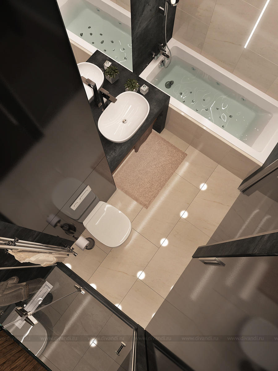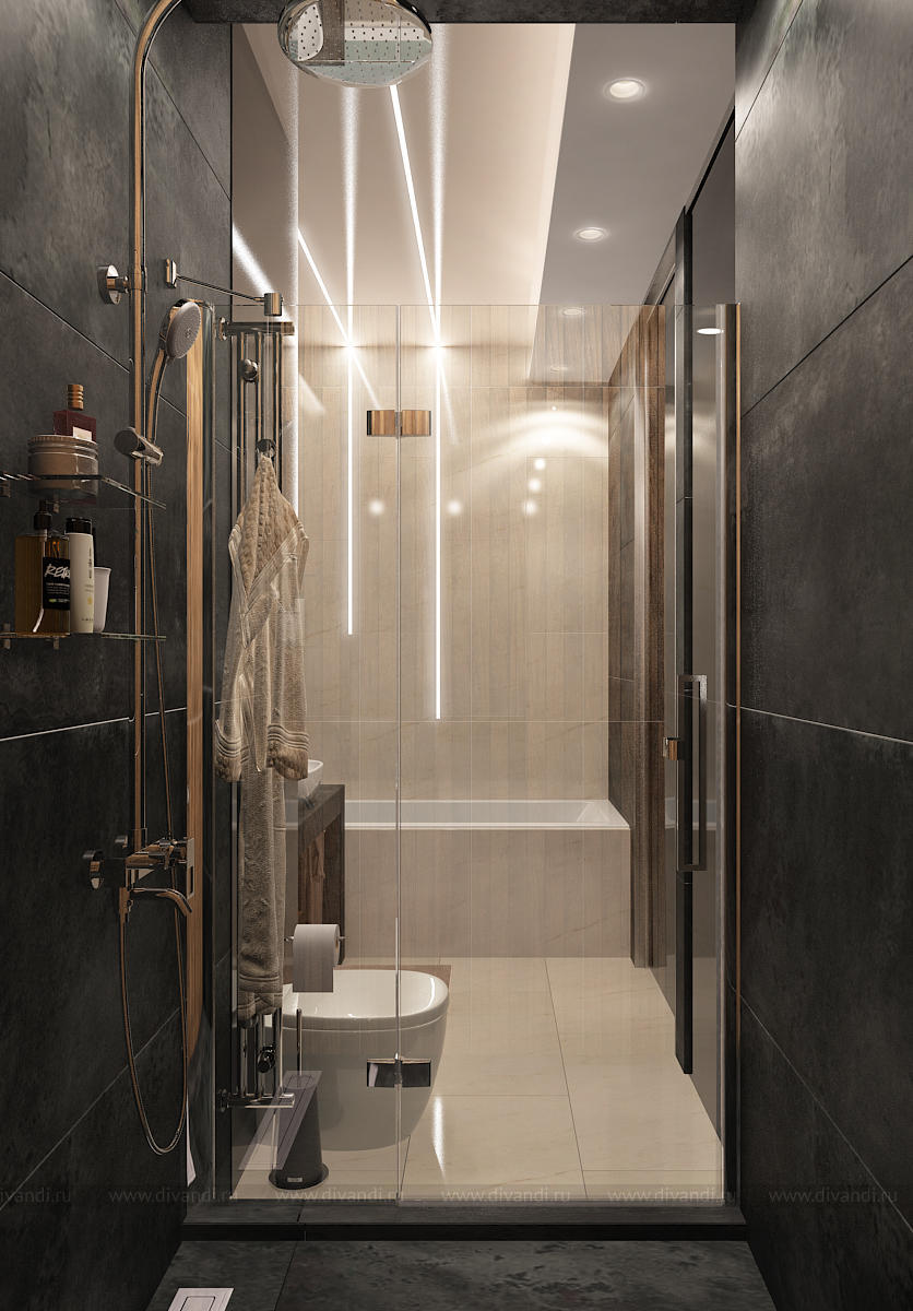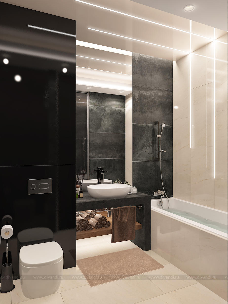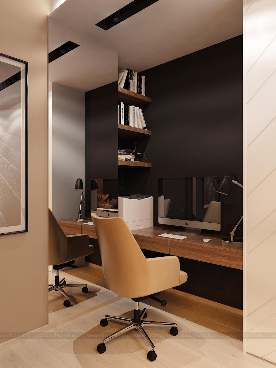 Мы использовали стекло, декоративную штукатурку, 3D панели, керамогранит, зеркало, дерево, гладкие и матовые поверхности. Все это разнообразие компенсируется минимальным наличием цветовой гаммы. Архитектура пространства тоже имеет сложные конструктивные узлы и переходы. Такой микс требует грамотного подхода в работе над дизайн-проектом. Мы старались не нарушить баланс, гармонию и композицию, поэтому интерьер смотрится графично и эффектно. Каждая точка и каждый ракурс раскрывает пространство по-новому.