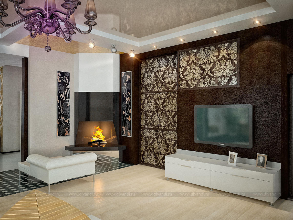 Дизайн интерьеров гостиной коттеджа в Палниксе
