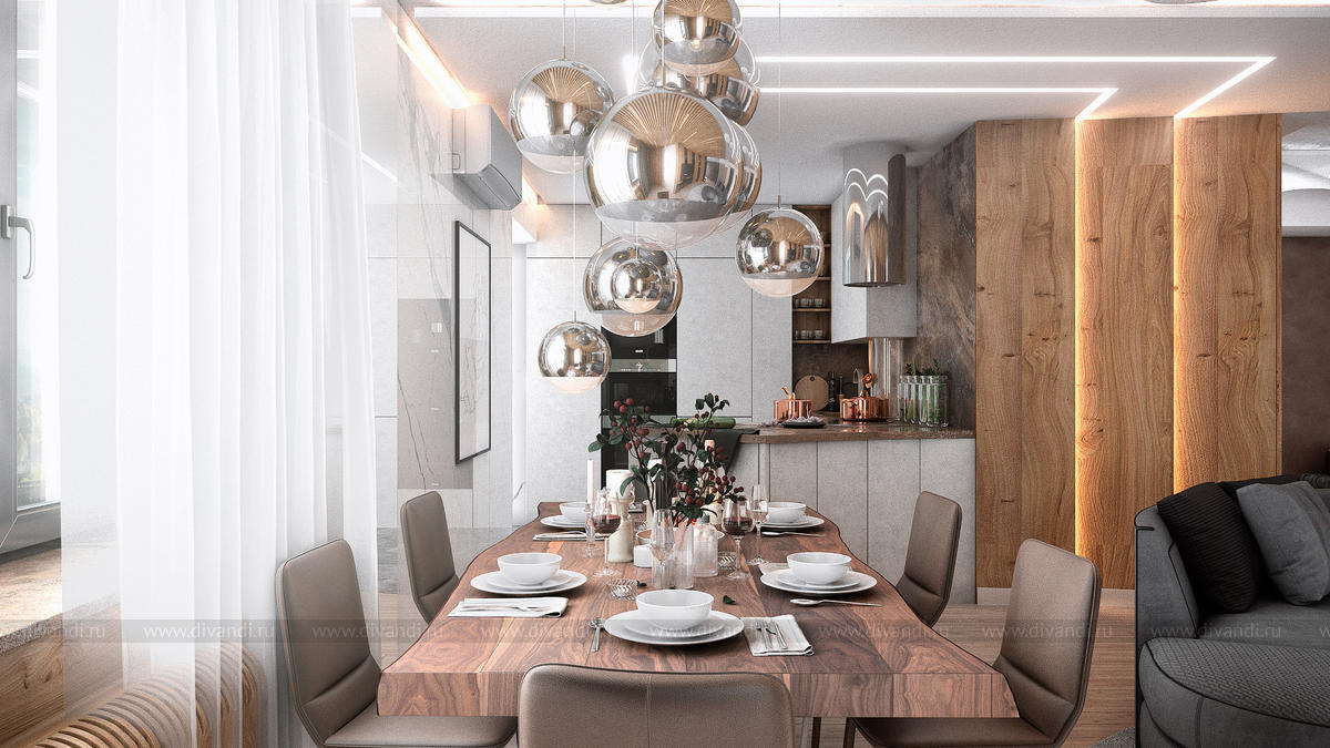 Тип проекта: квартира, кухня, гостиная
