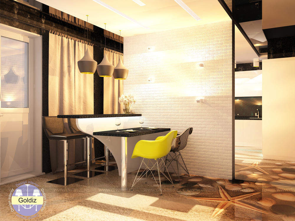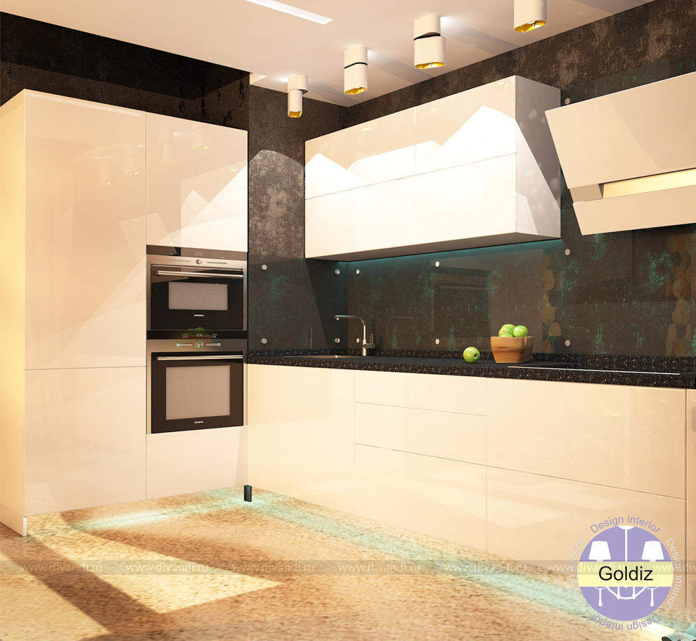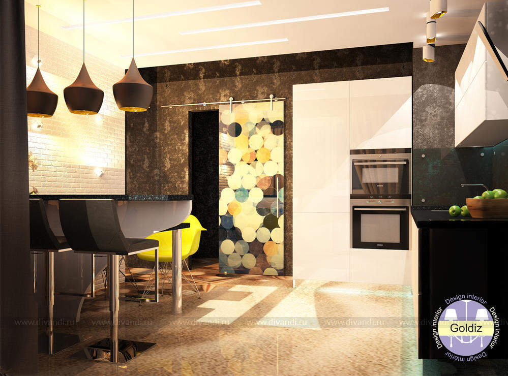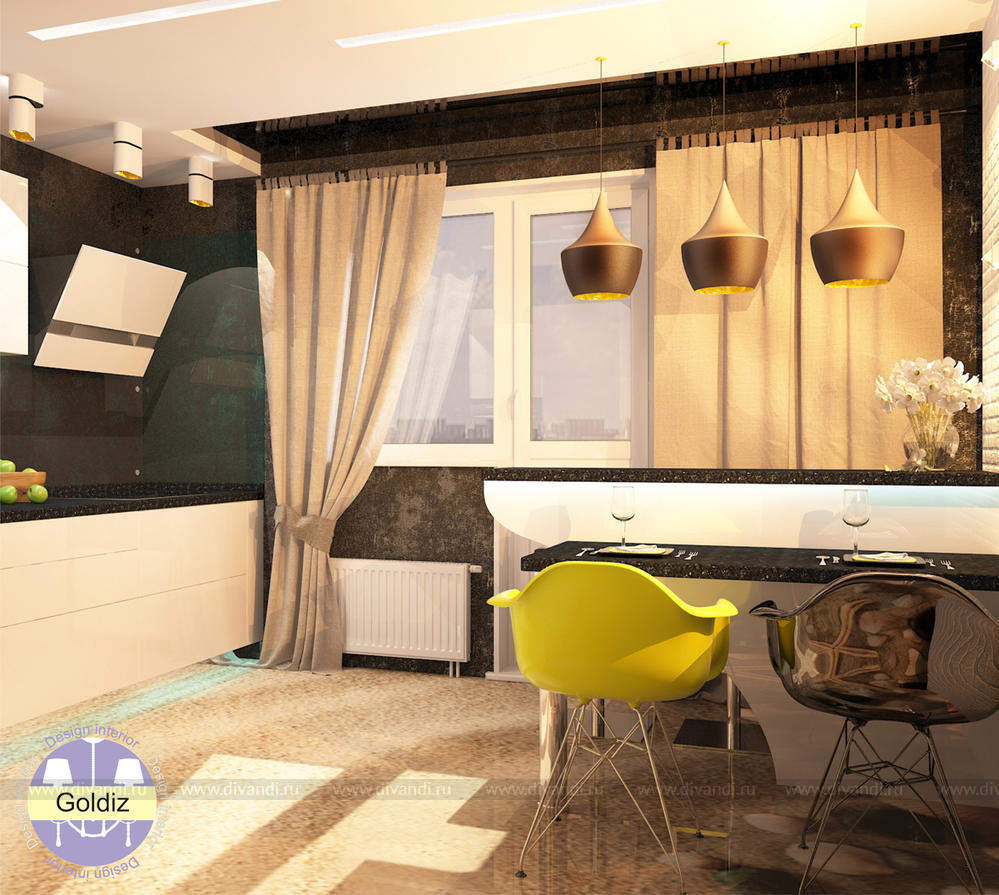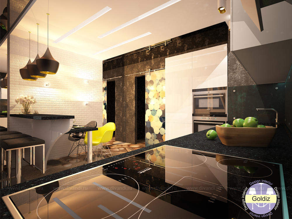 Дизайн интерьера кухни в современном стиле, построенного на контрасте черного и белого