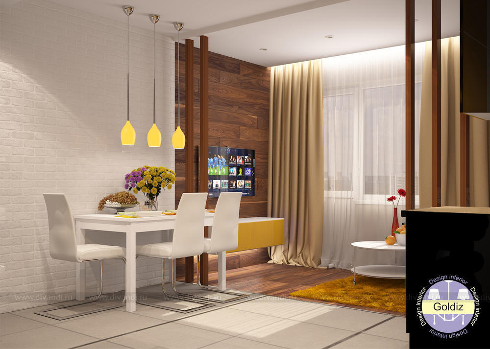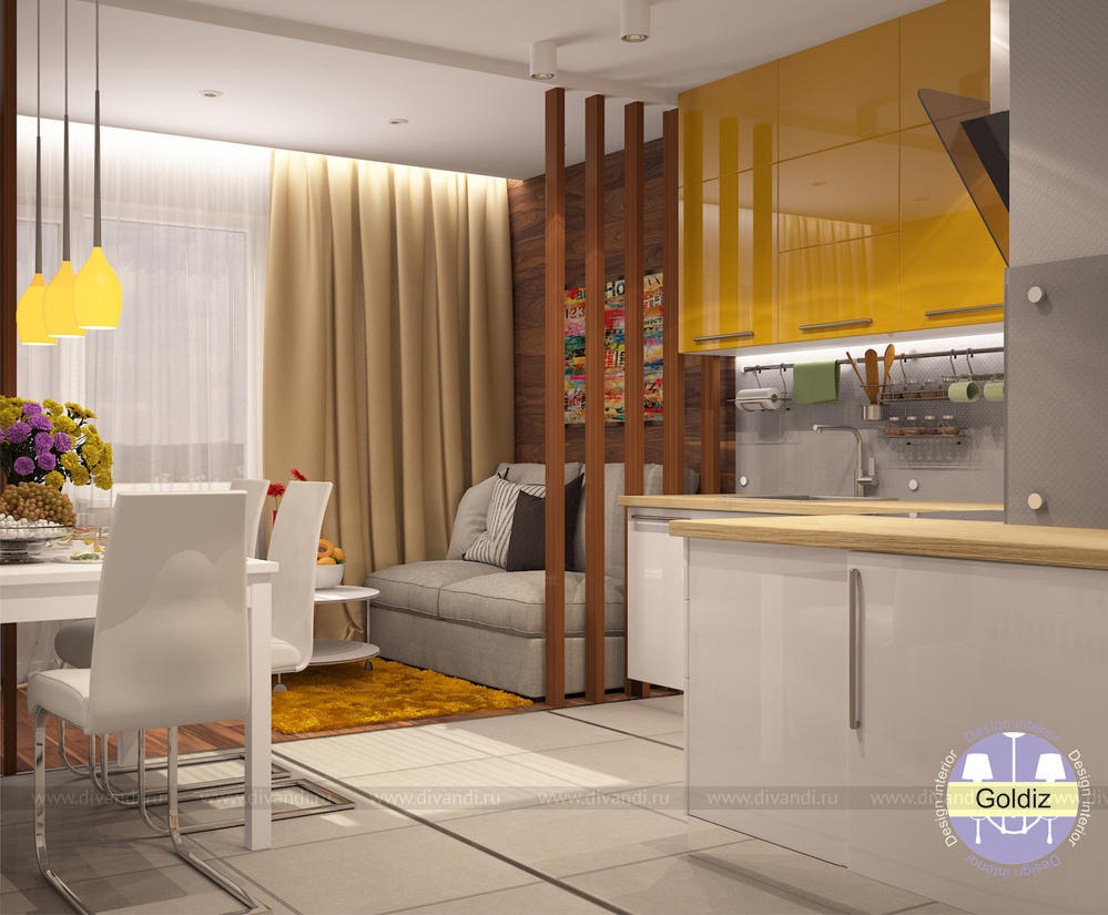 Разработали дизайн кухни-гостиной ( 15 кв.м.) в современном стиле. ЖК Рассветный