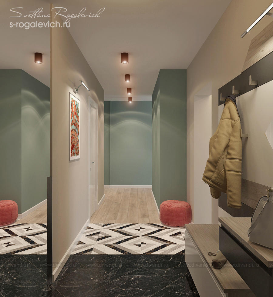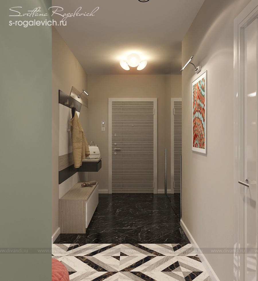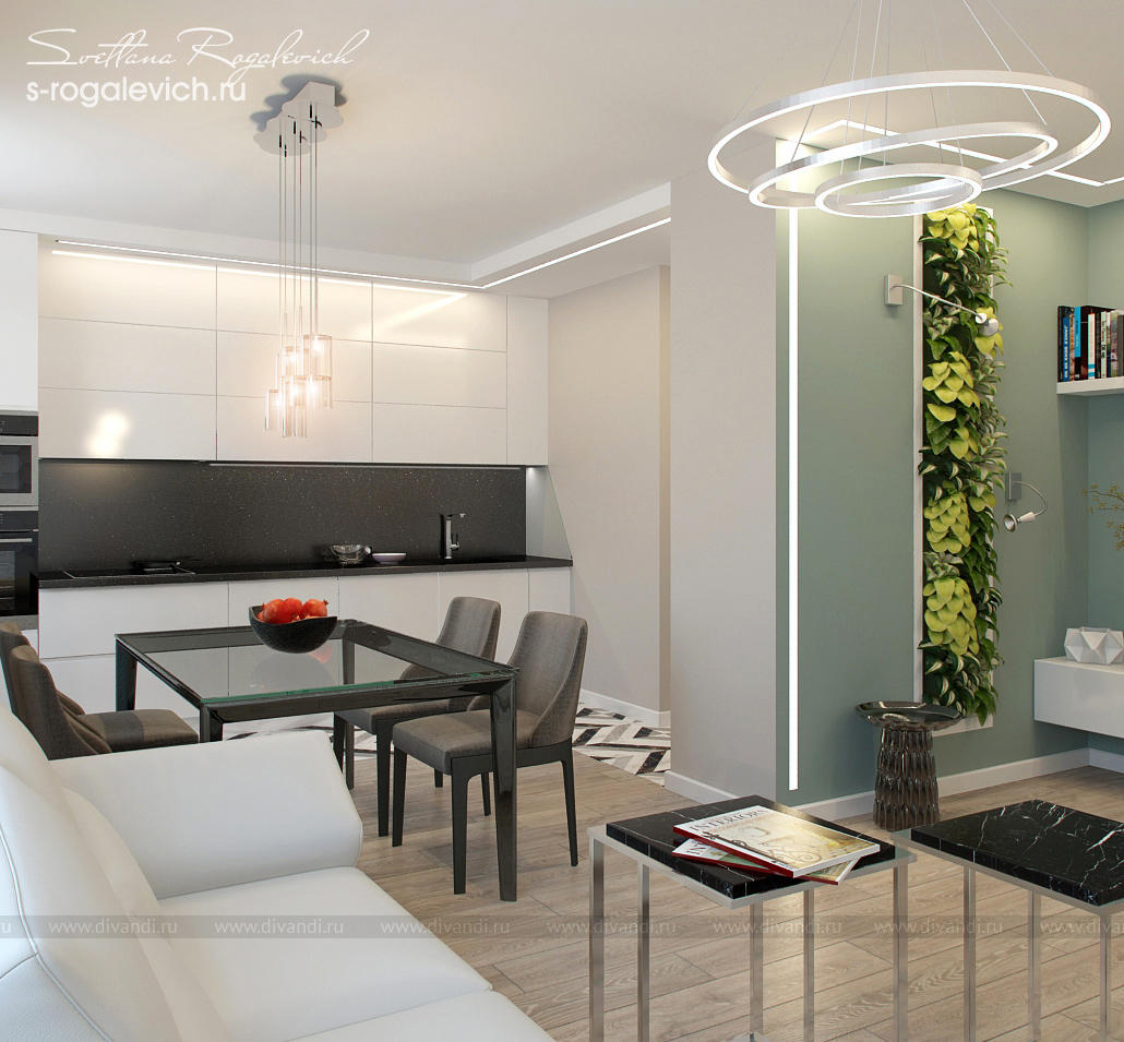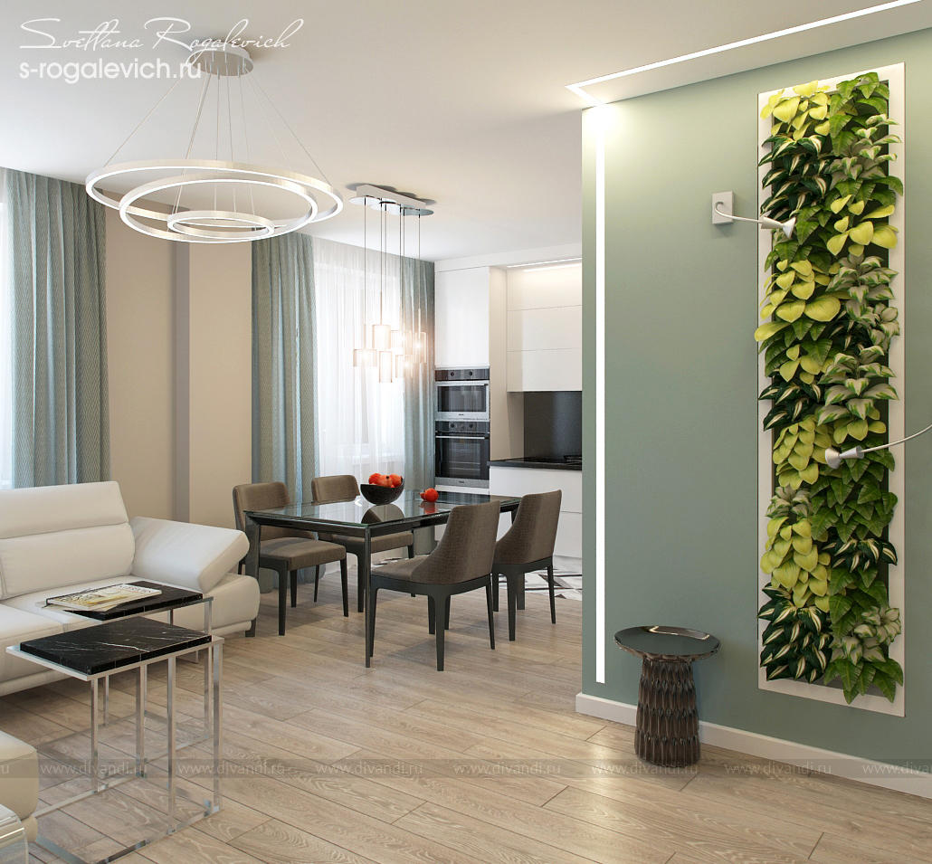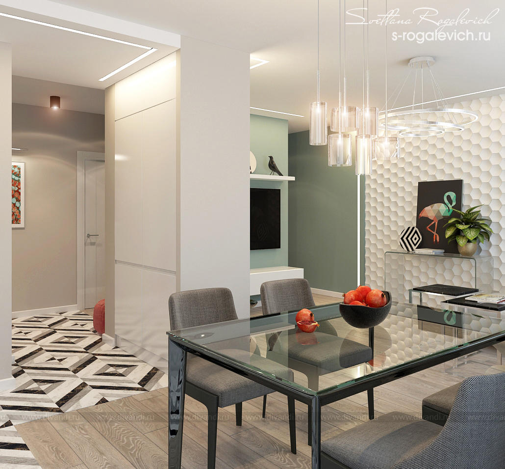 Тип проекта: квартира, кухня, гостиная, прихожая