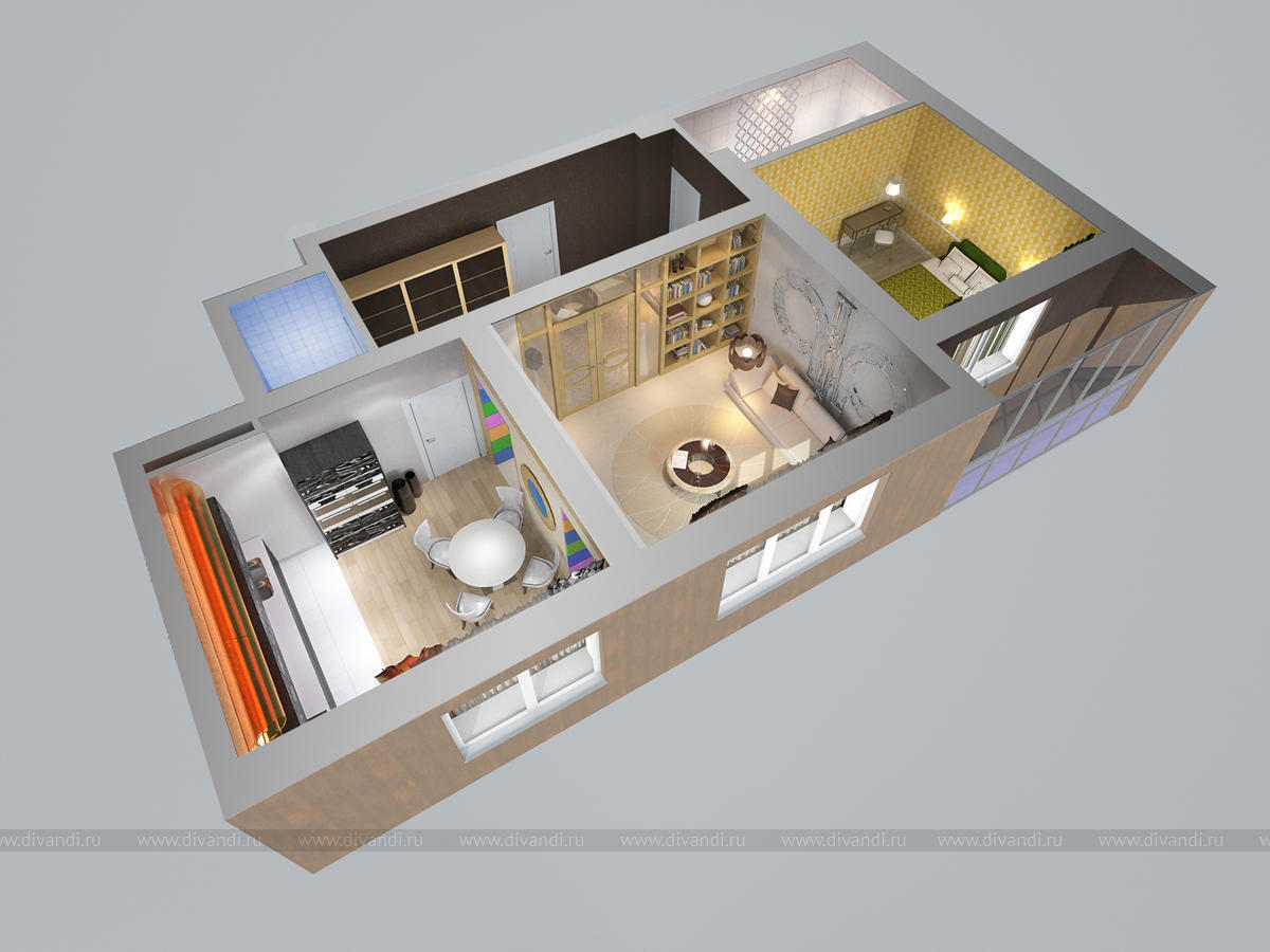 Тип проекта: квартира, кухня, ванная, гостиная