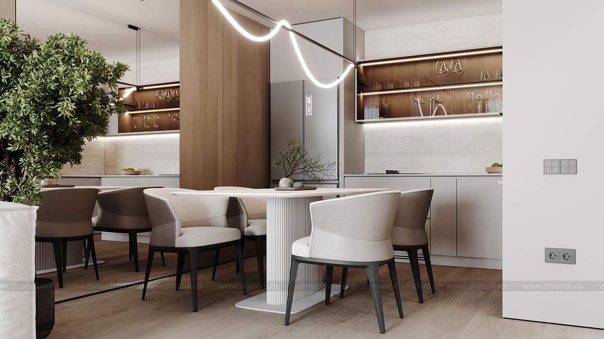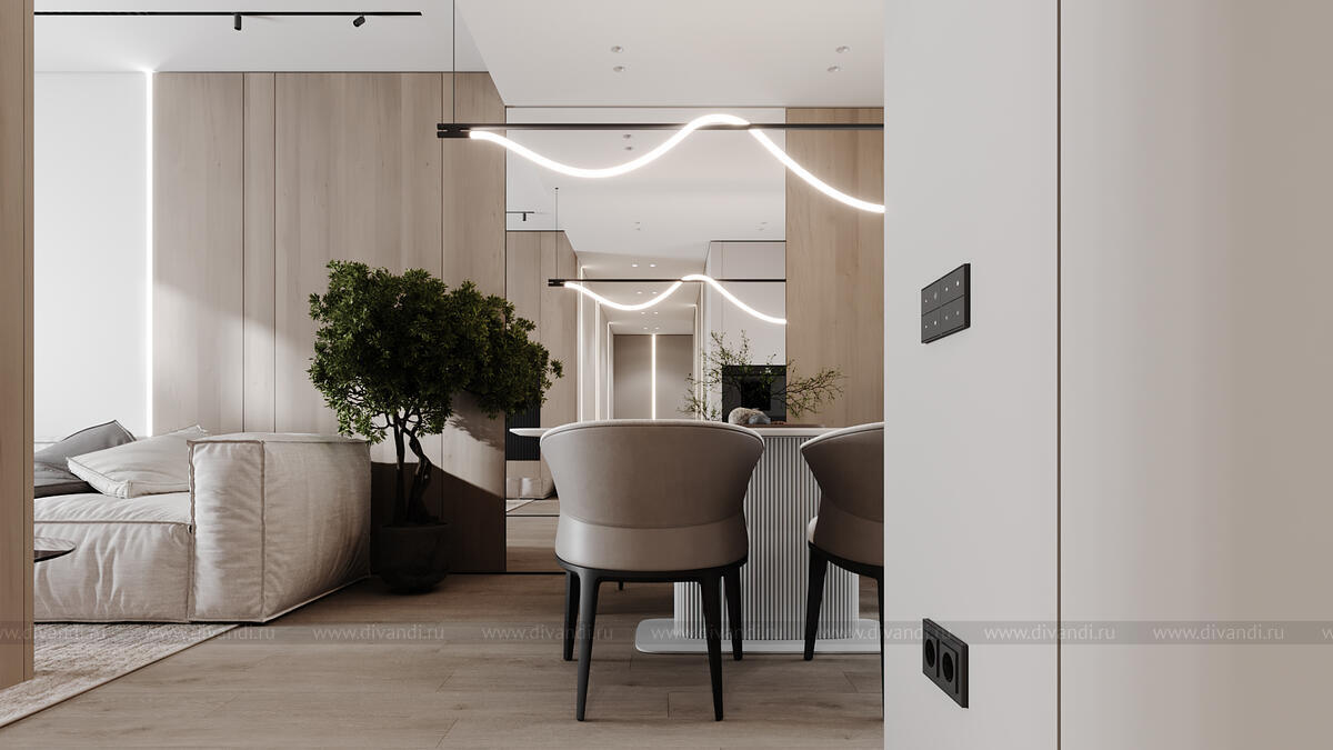 Минималистичный дизайн интерьера, функциональность и светлота — ключевые моменты проекта. Светлые оттенки и дерево создают гармонию. Заказчикам было важно получить современное функциональное пространство. Пространство организовано так, чтобы подчеркнуть чистоту линий и форм. Мебель подобрана с учетом максимальной функциональности.