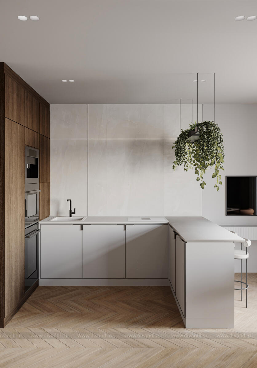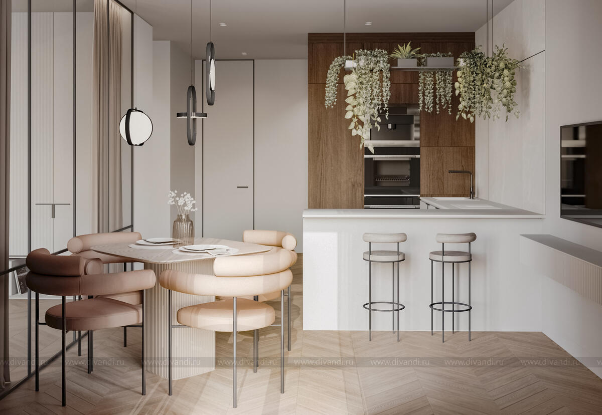 Дизайн прихожей и кухни-гостиной в ЖК Мельница