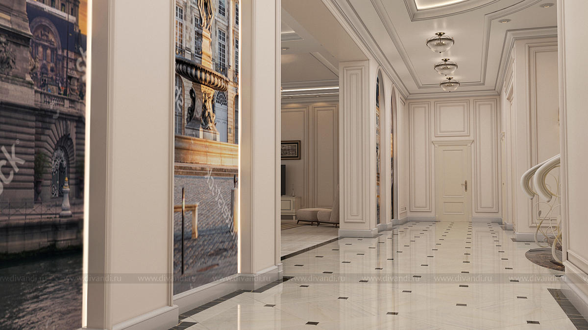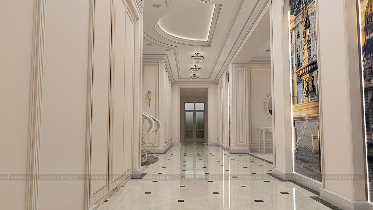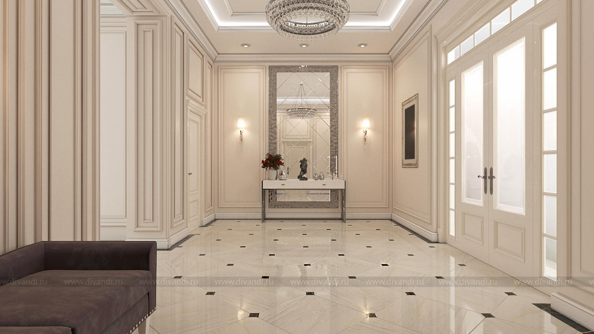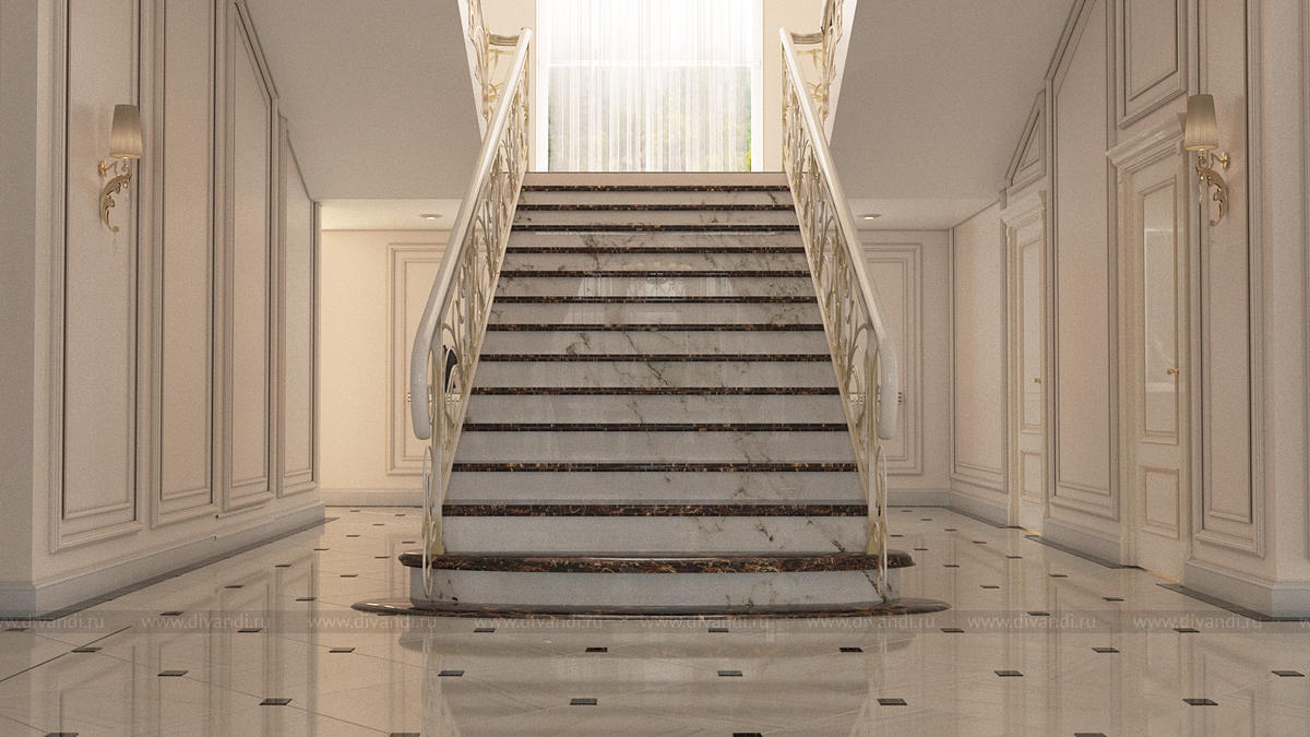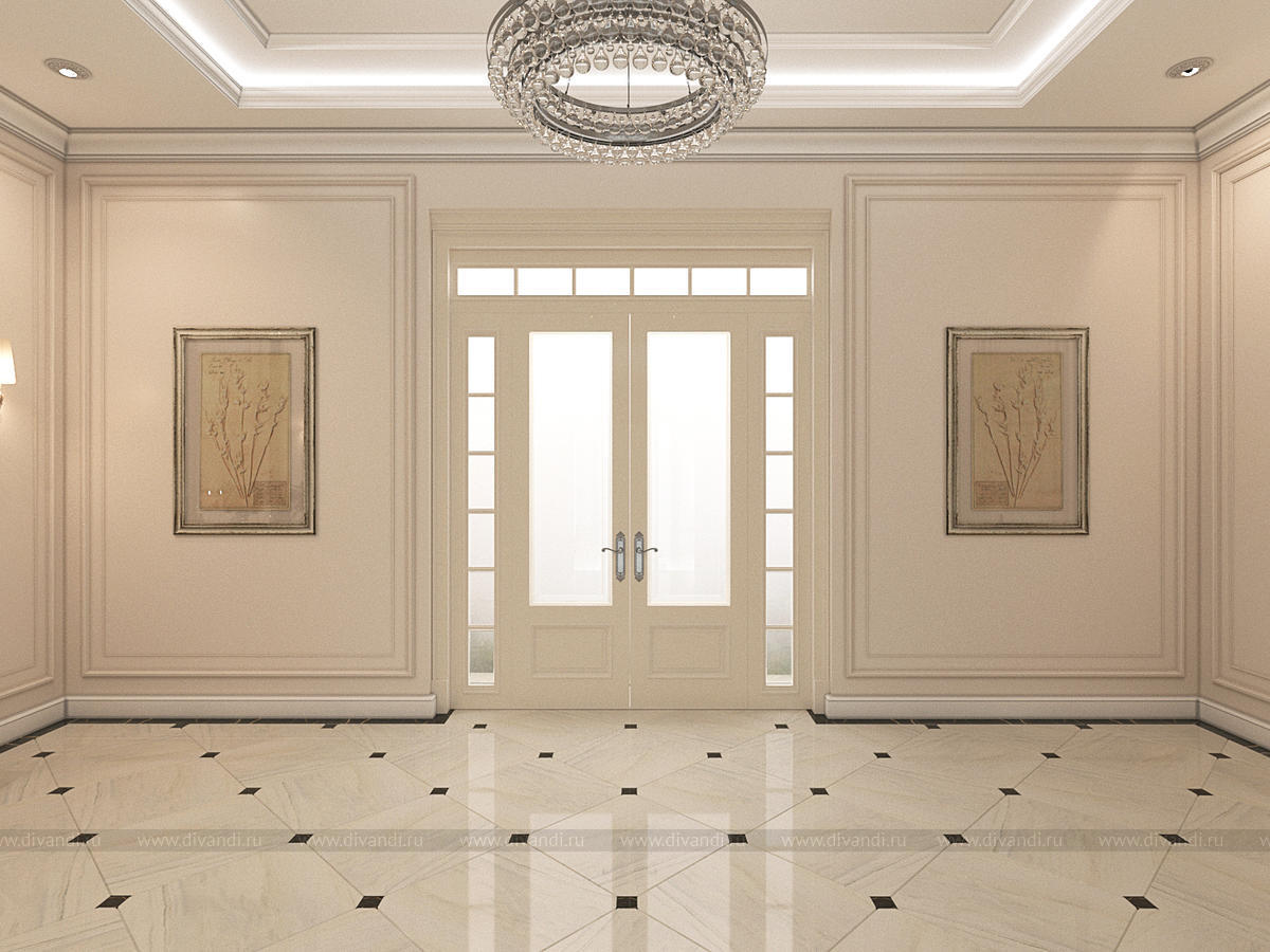 Дизайн интерьеров прихожей и холла в загородном коттедже 850 кв.м.