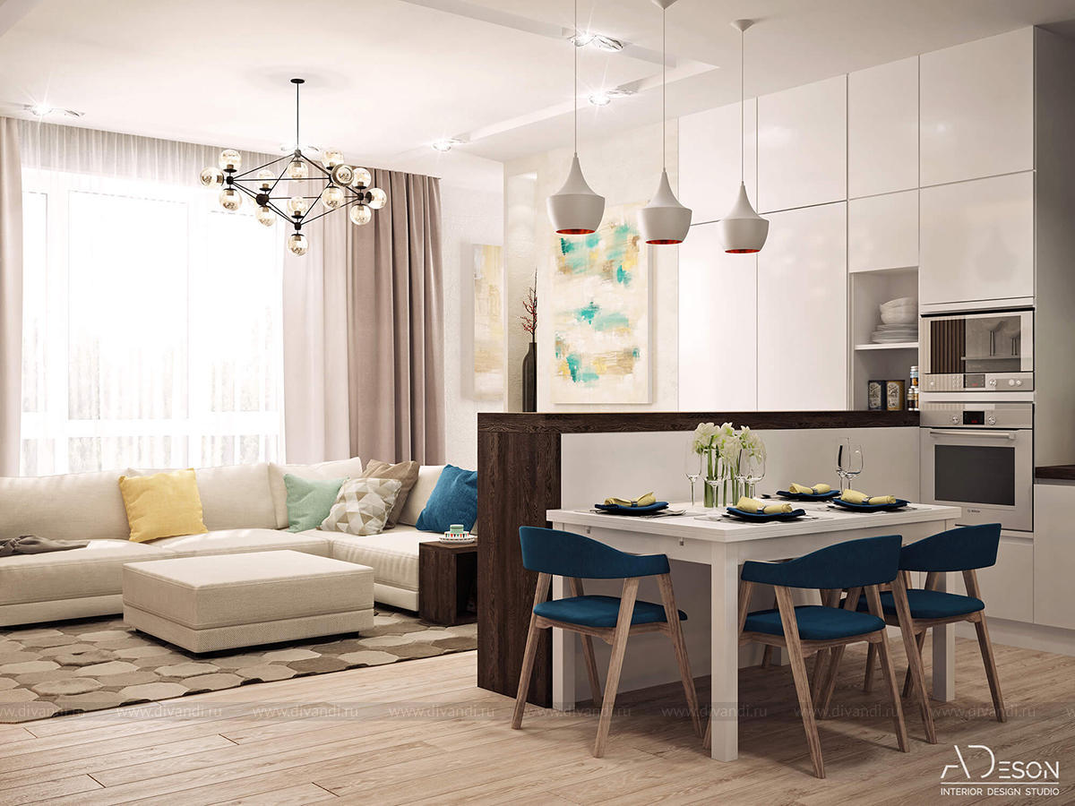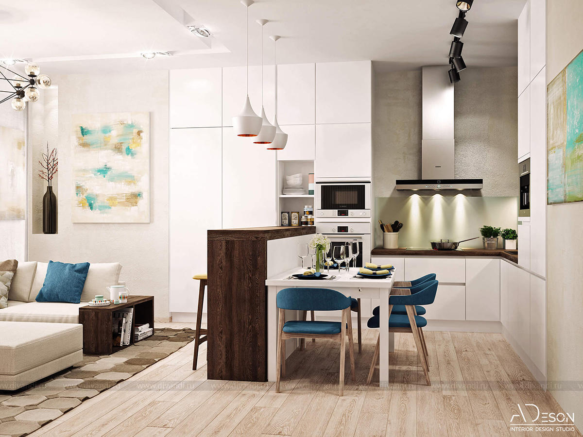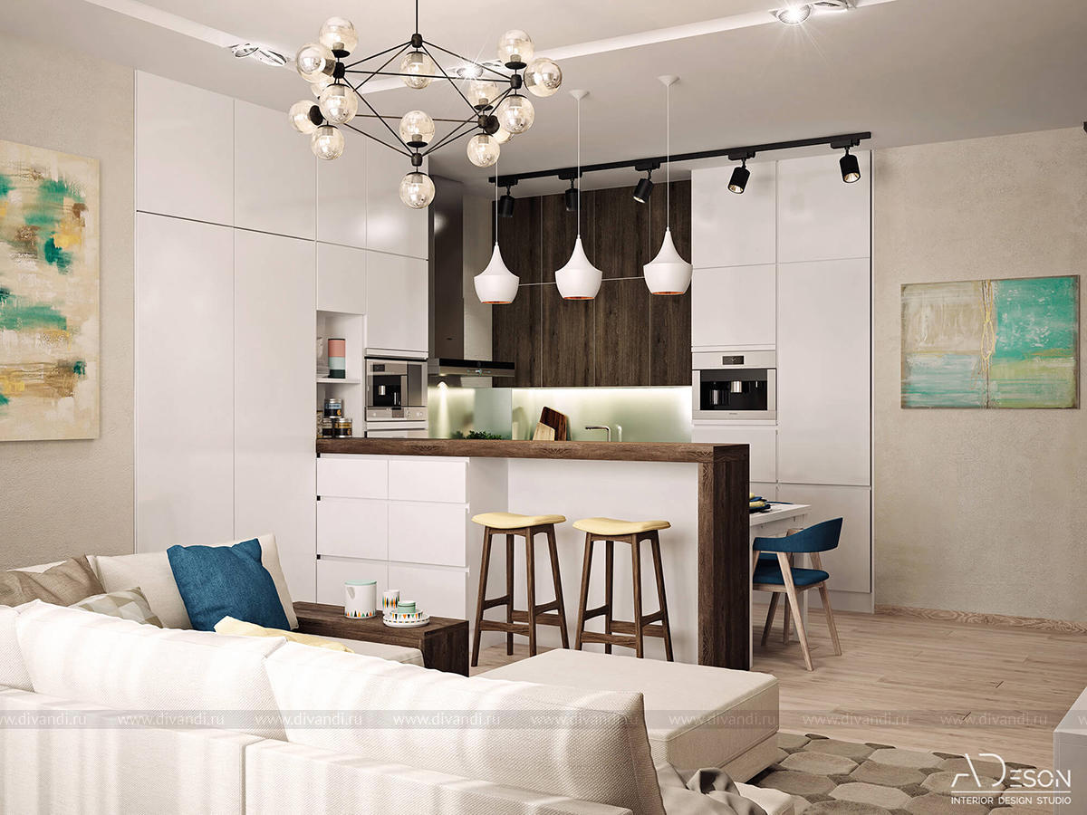 Тип проекта: квартира, кухня, гостиная