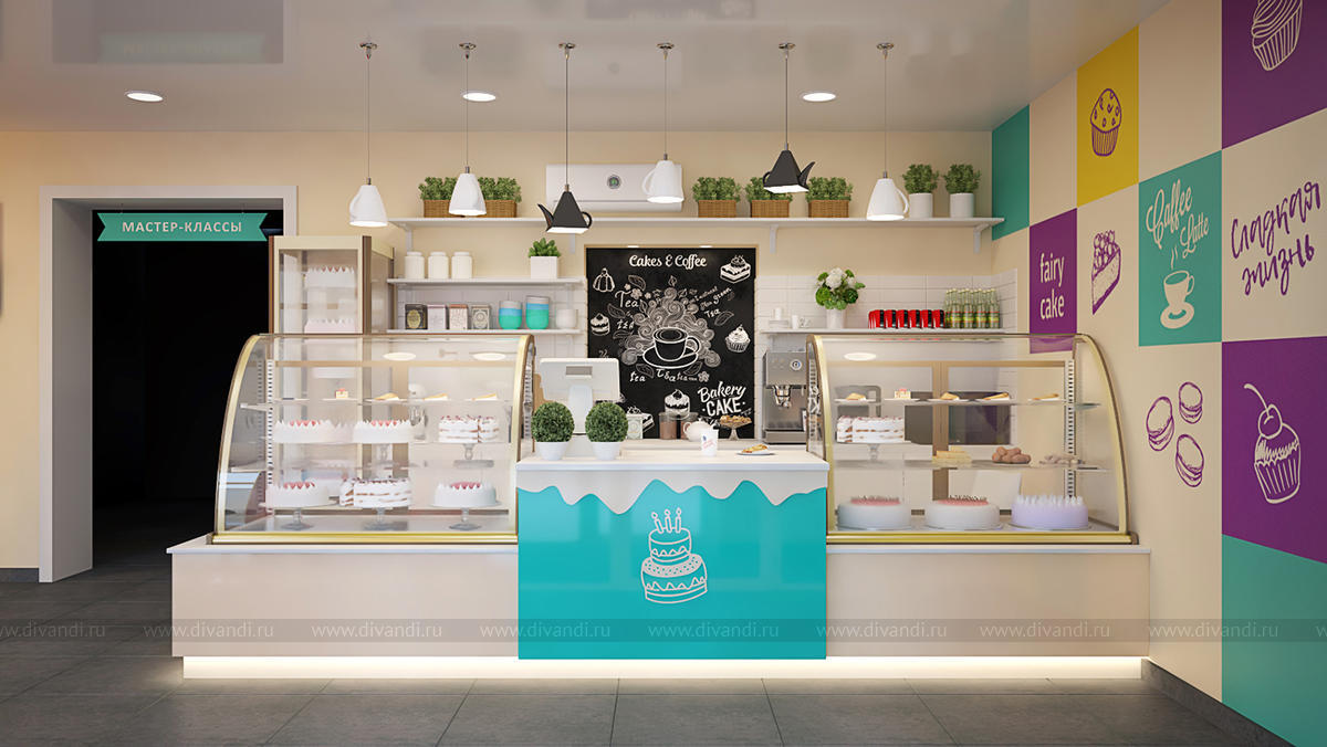 Дизайн-проект интерьера кондитерской "9 островов"
