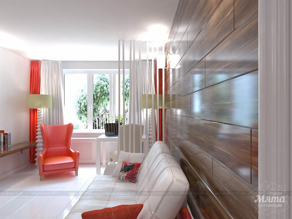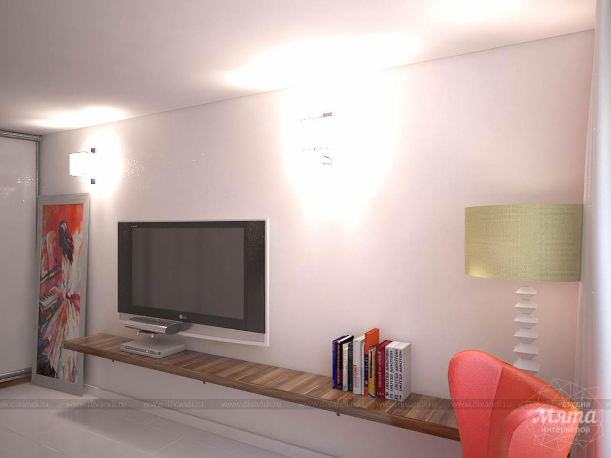 Мы использовали много белого цвета – на полу, стенах, потолке и мебели. Изюминку проекту придают яркие акценты. Глянцевые поверхности отражают свет и делают пространство более объемным.