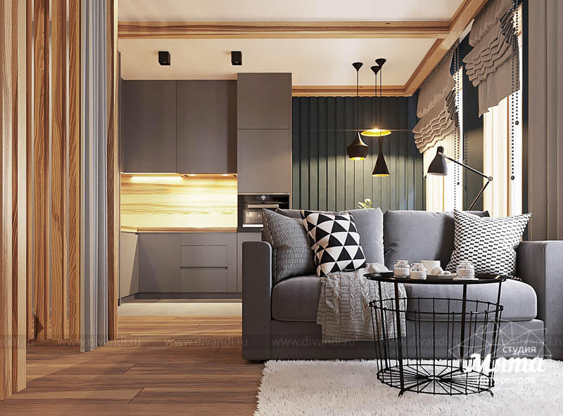 Дизайн-проект кухни-гостиной в квартире в Екатеринбурге