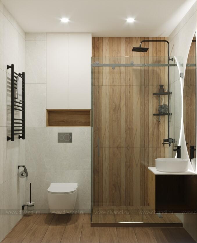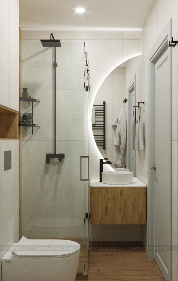 чертежи для двух санузлов, кухни-гостиной и прихожей.