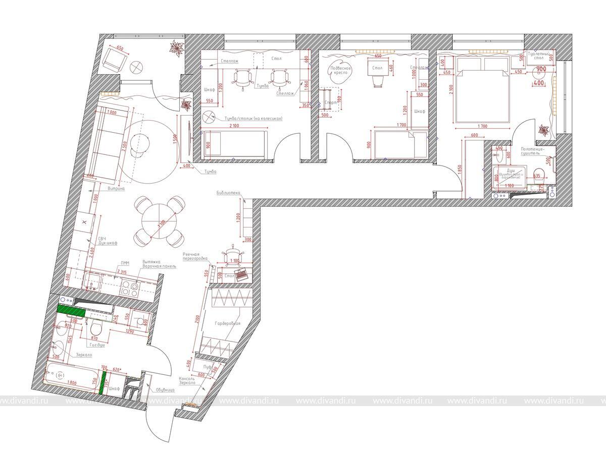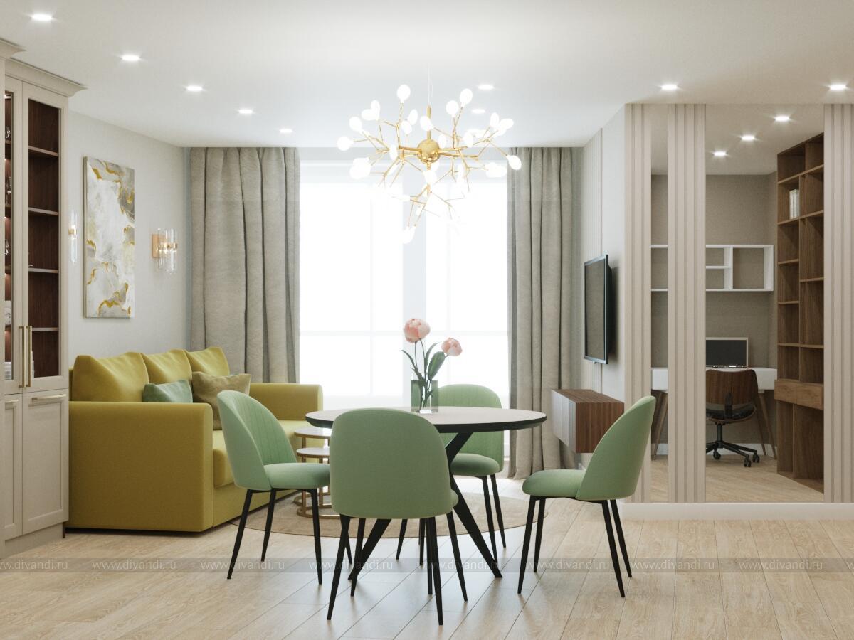 Квартира в Академическом с чистовым ремонтом. Площадь 105 кв.м. Семья из 4-человек - родителей и дочек 2-х и 8 лет. Важно было предусмотреть спальные места для гостей, рабочую зону для папы. Необходимо было предложить несколько вариантов расстановки мебели, зонирование для всей квартиры, выполнить эскизы и