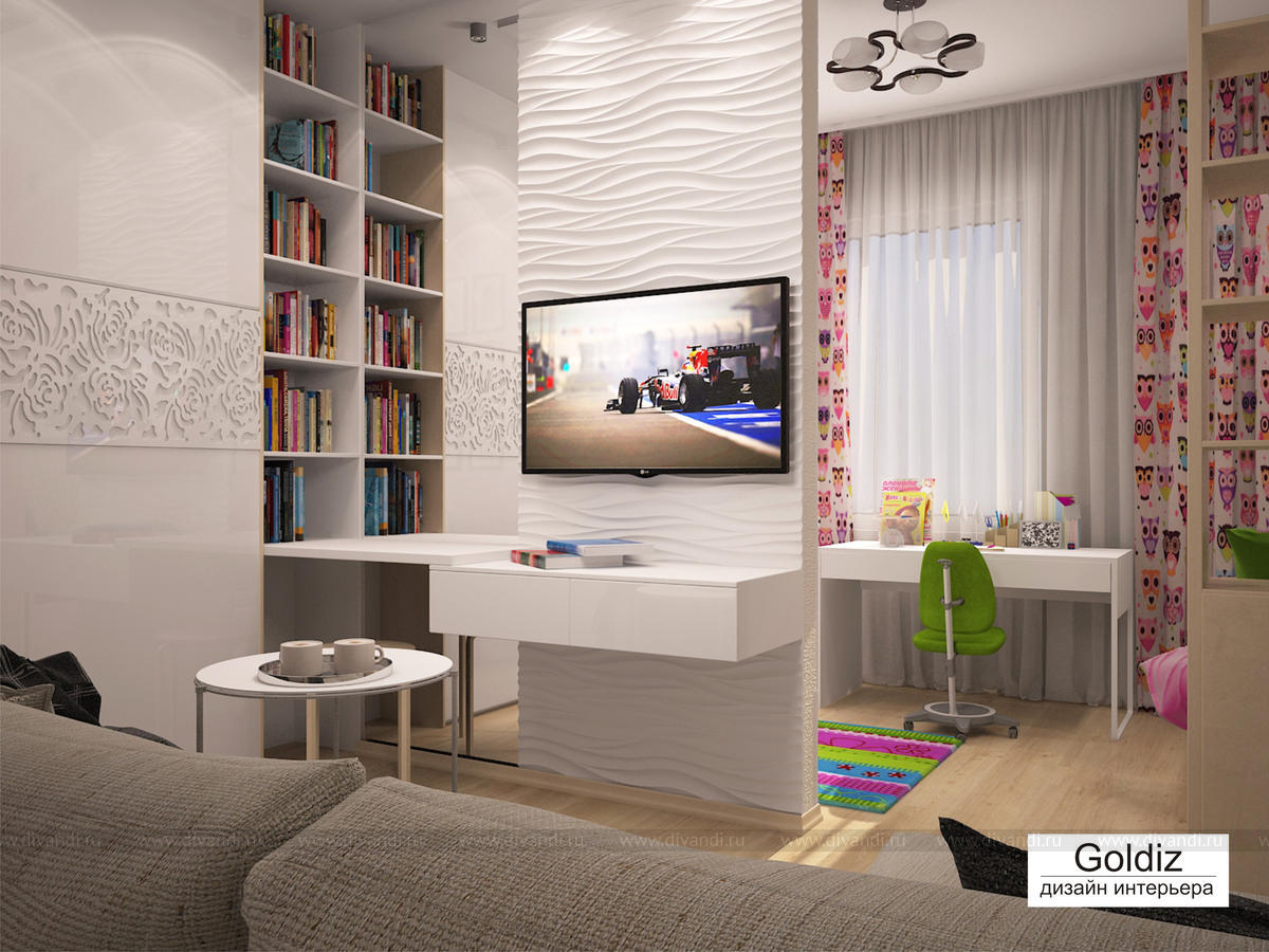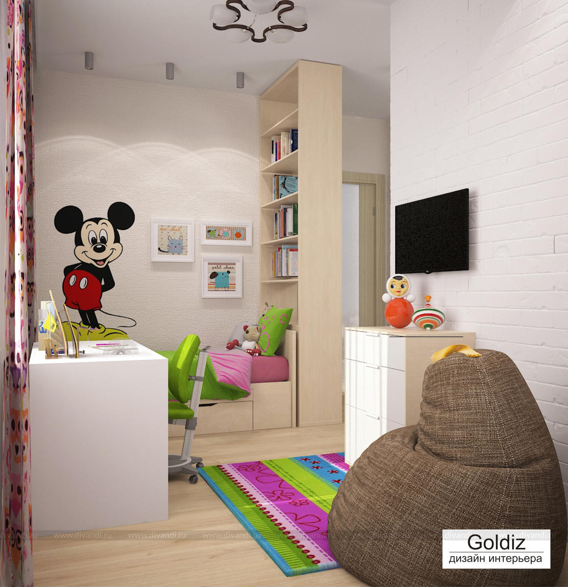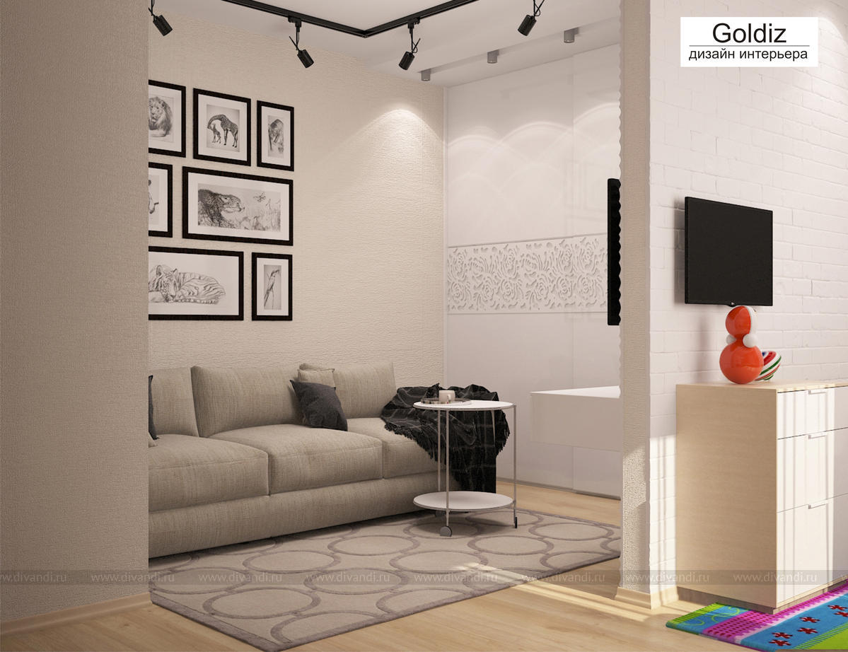 Дизайн-проект однокомнатной квартиры. Разделение одного помещения на детскую и гостиную