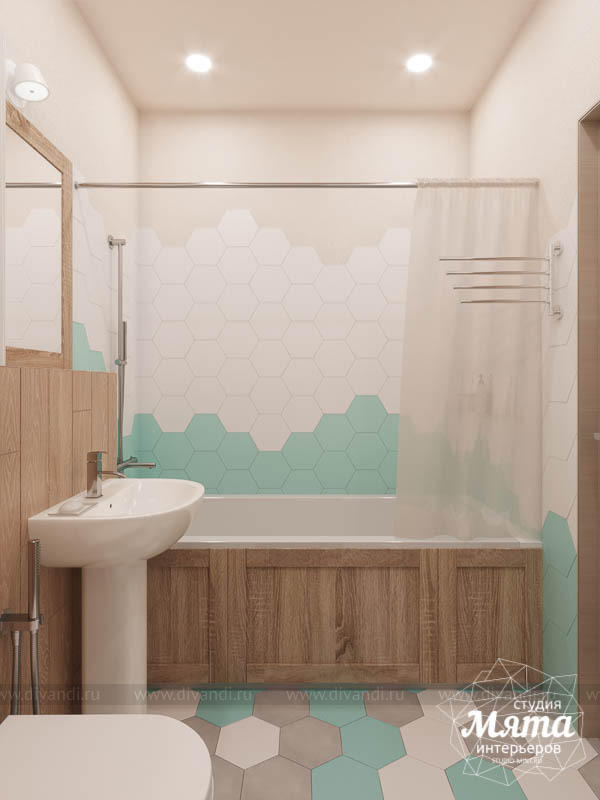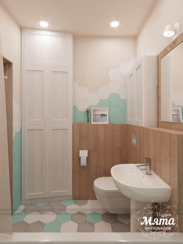 Дизайн-проект ванной комнаты в голубых цветах в квартире в Екатеринбурге
