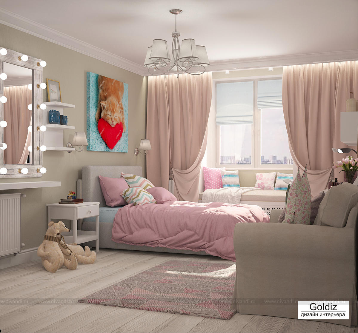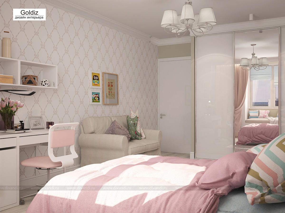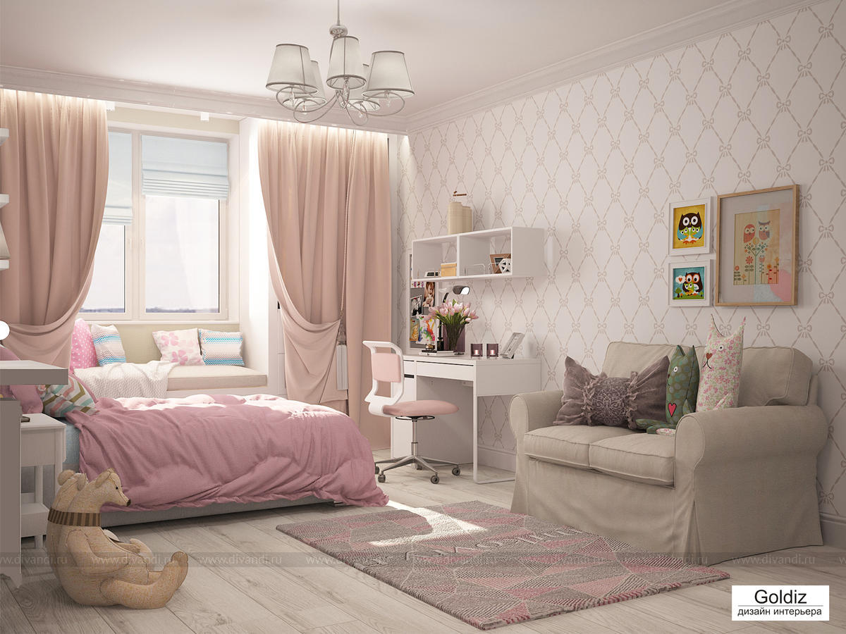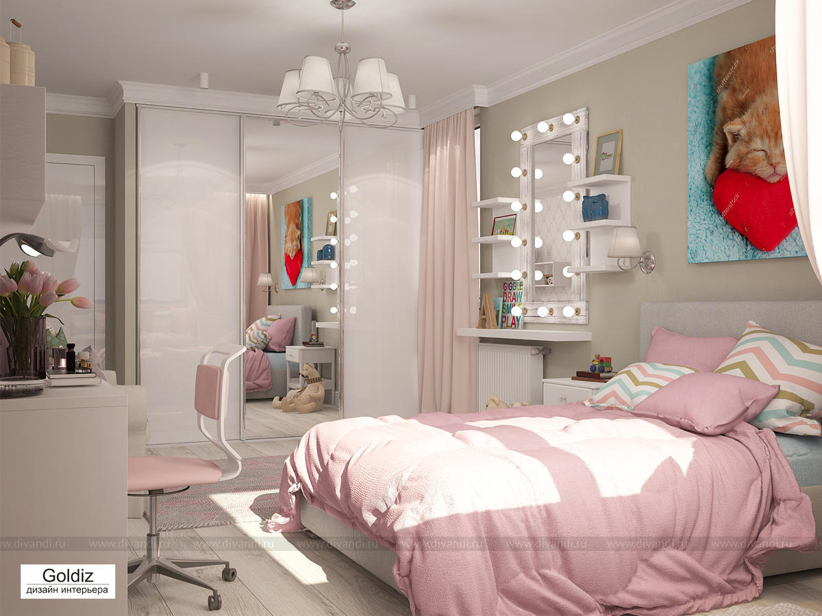 Дизайн интерьера комнаты для девочки "Фламинго"