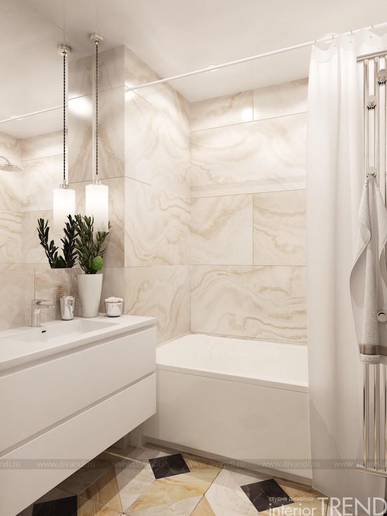 Дизайн интерьера ванной комнаты в ЖК Квартал художников