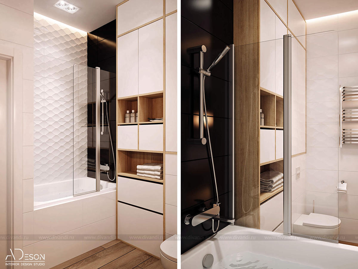 Дизайн интерьера санузла в двухкомнатной квартире. Проект- финалист конкурса "Ванная комната: сияние чистого разума" на портале PINWIN