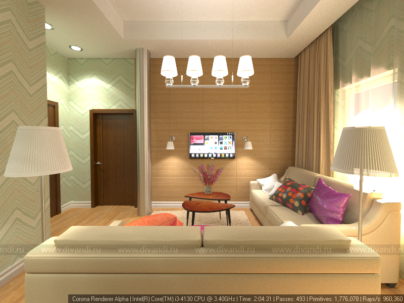 Для маленькой гостевой правильным решением было сделать основной фон в мягких тонах. Геометрический орнамент на стенах и яркие акценты делают комнату заметно "теплее".