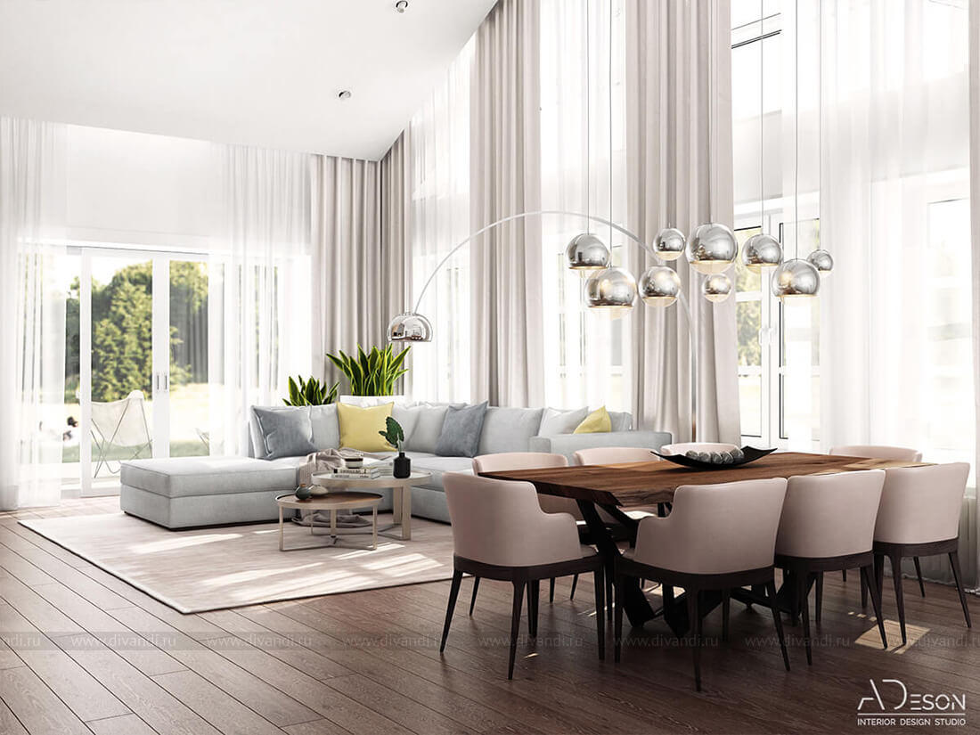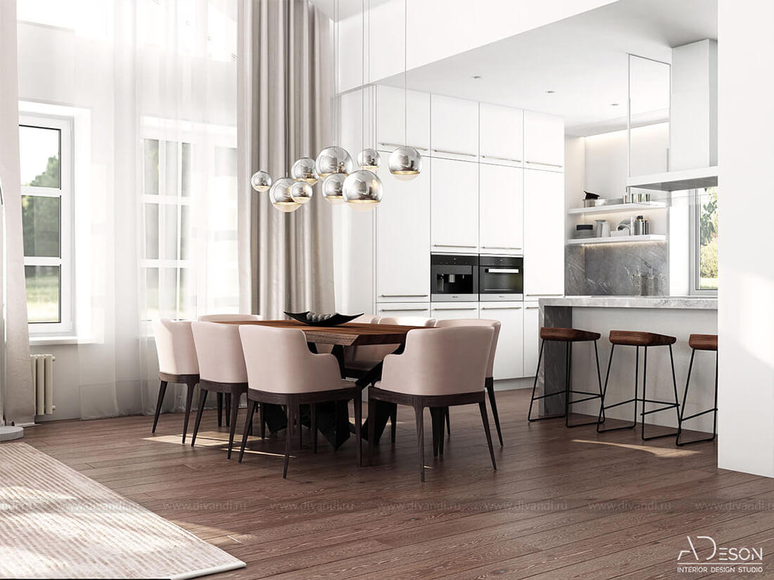 Светлый современный интерьер разрабатывался для семьи с двумя детьми.