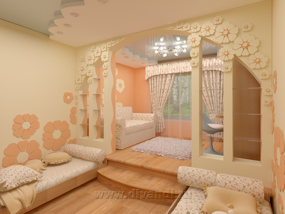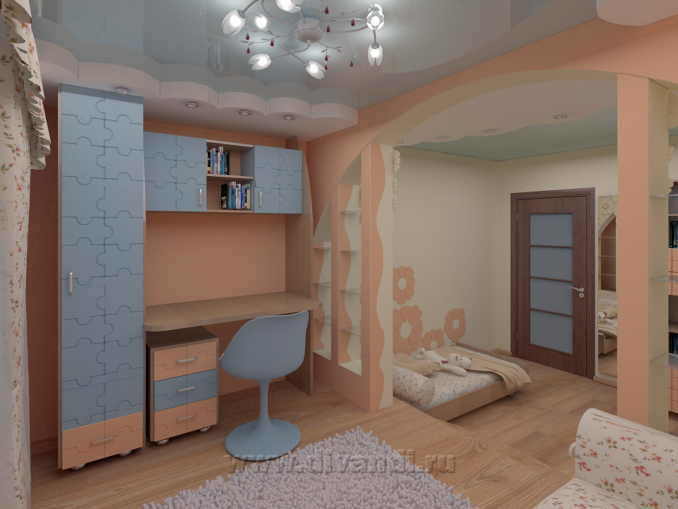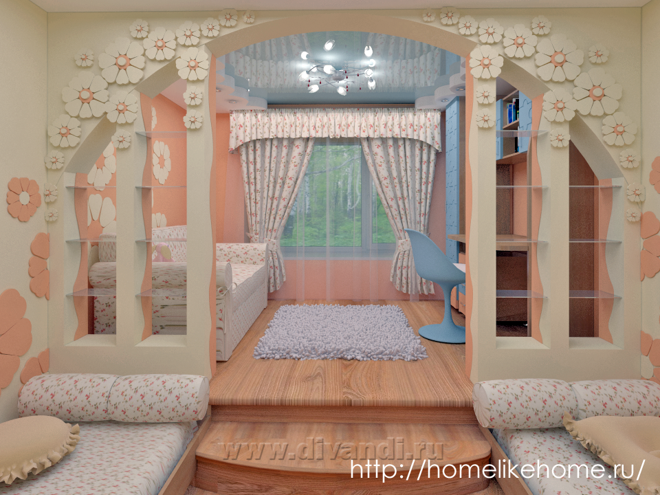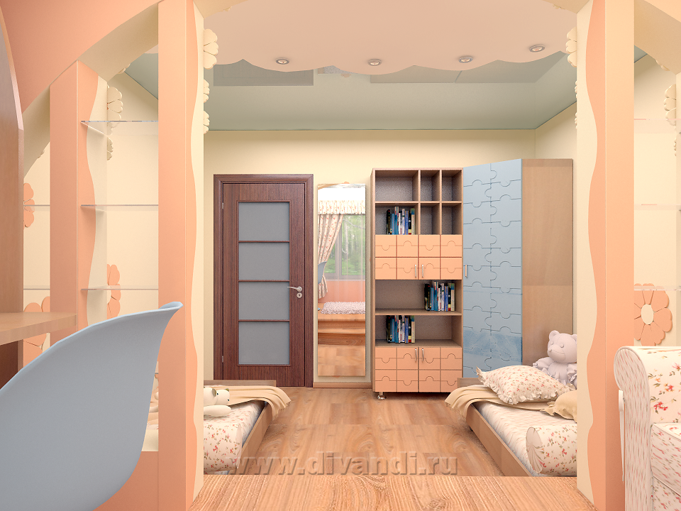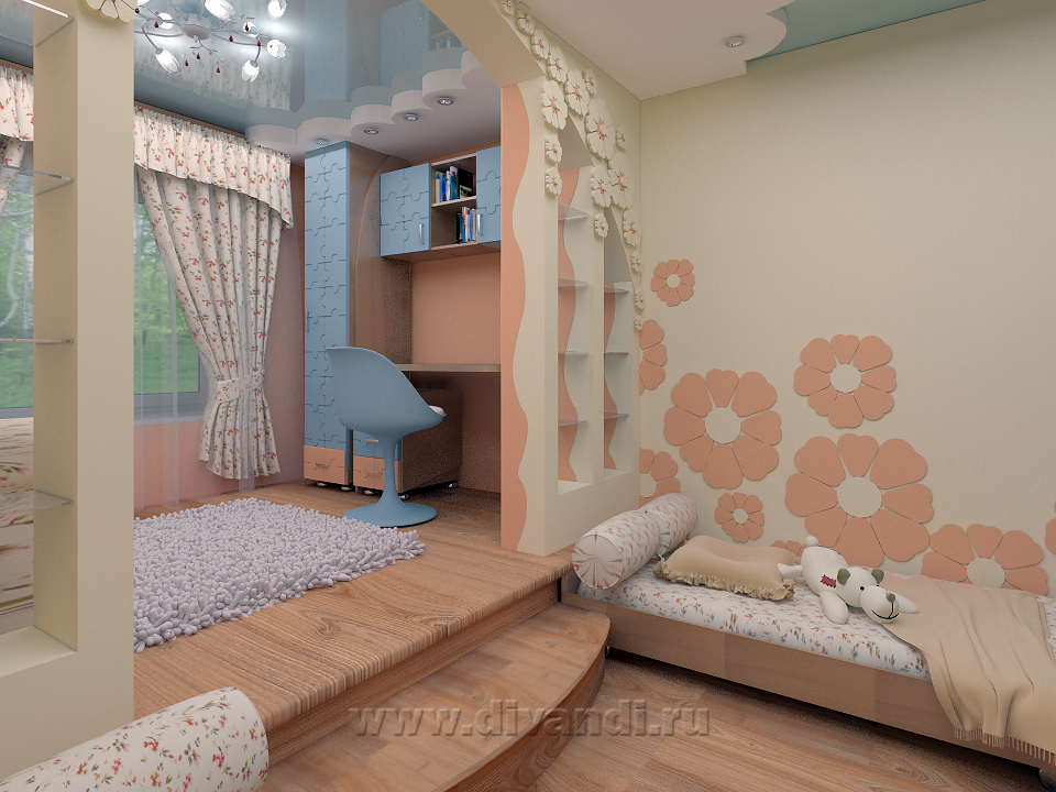 Комната для двух девочек двух и одиннадцати лет. Когда познакомились с ними по ближе, захотелось создать интерьер, свежий, юный, как сами хозяйки.