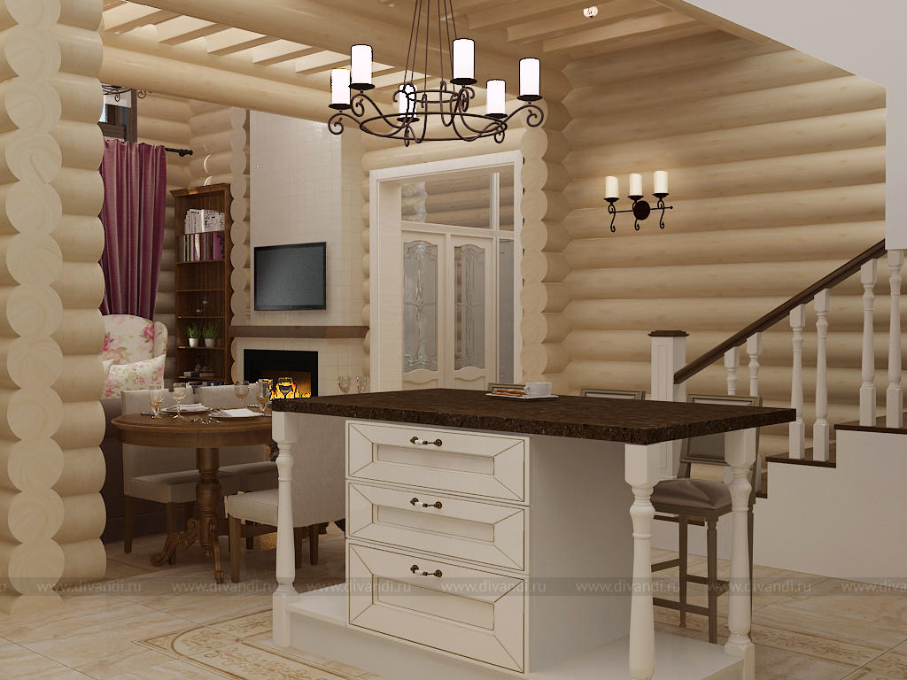 Тип проекта: загородный дом, кухня, ванная, гостиная