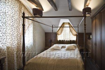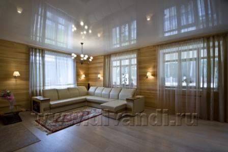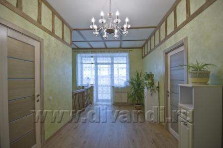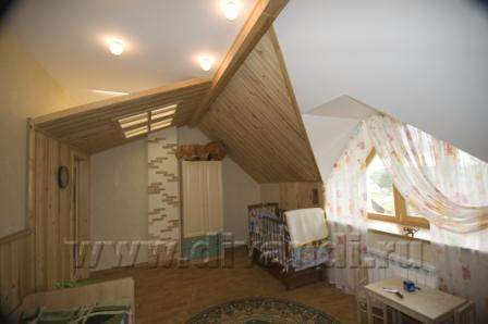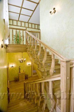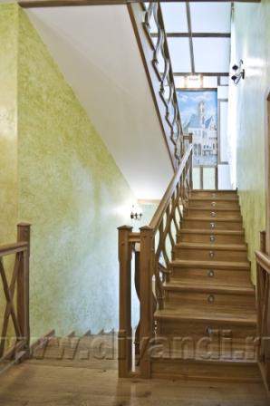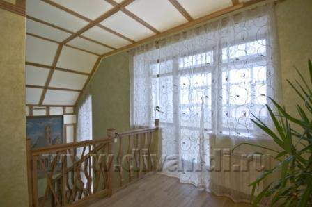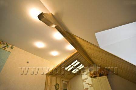 Потолок над лестничным маршем имеет гипертрофированно большую высоту и сложную геометрию: часть потолка – горизонтальная плоскость, а вторая – наклонный скат.