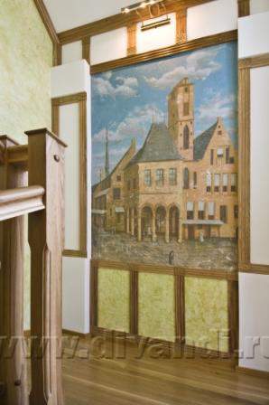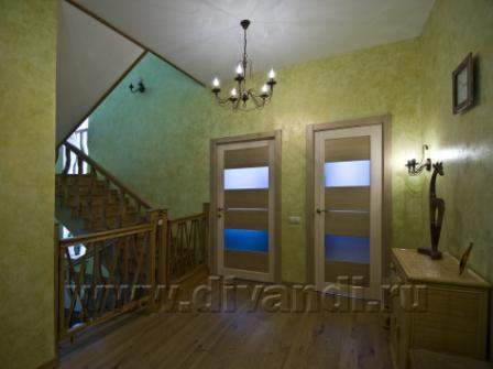 Проект не предусматривал создания единой стилевой концепции, поскольку заказчику очень хотелось, чтобы каждое помещение в доме было разным, со своей неповторимой атмосферой и настроением. Например, холл с лестницей оформлен в винтажном стиле.