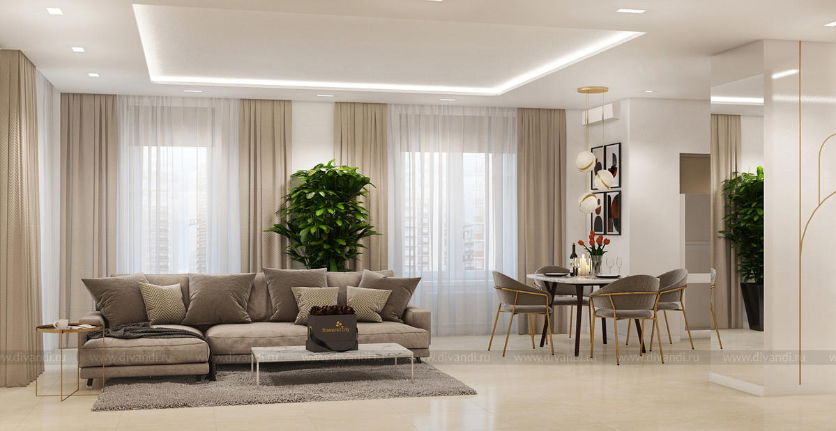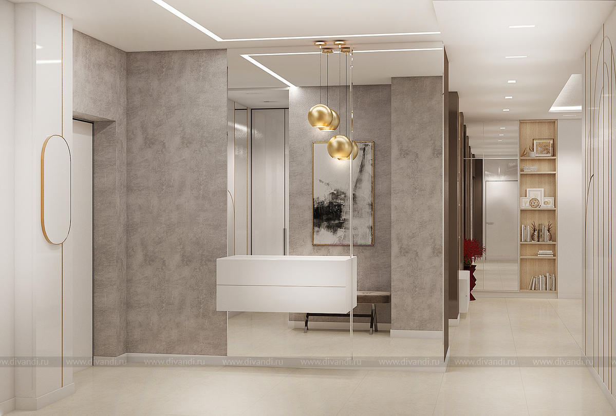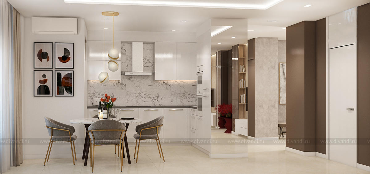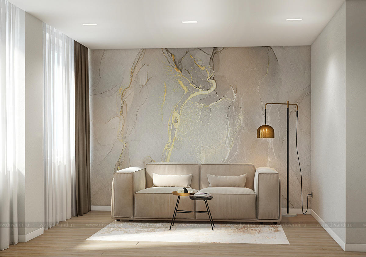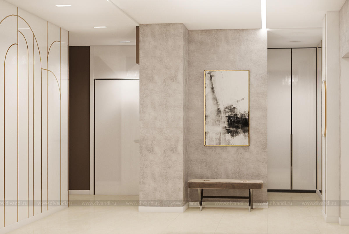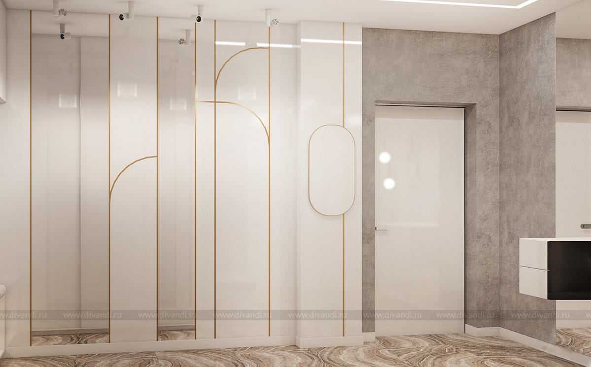 Квартира проектировалась для молодой семьи.Пожелание заказчиков было создать уютное пространство из экологичных материалов.Каждое помещение имеет свою "изюминку". Мы постарались добавить шарма в каждую деталь данного интерьера.Красивые золотистые перья на шоколадном фоне в спальне, обои под "мрамор" в гостевой, необычные шкафы прихожей, высокие панели на лаковых белых дверях, сочетание цветов, фактур в гостиной - все это создает шарм всей квартире. В данном проекте важно все. Все линии выверены и прорисованы только так, как они идут. Точность исполнения данного интерьера совпадает с оригиналом на 99,9% .