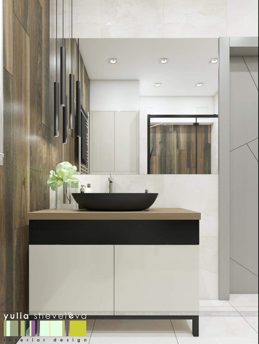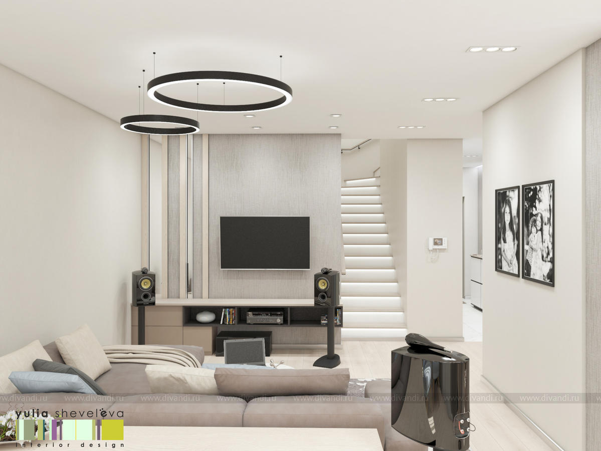 Стиль для интерьера был выбран легкий и современный, с акцентом на эко дизайн. Цвета выбраны нейтральные и спокойные, одним из главных материалов в интерьере стало дерево и материалы, имитирующие древесную текстуру.