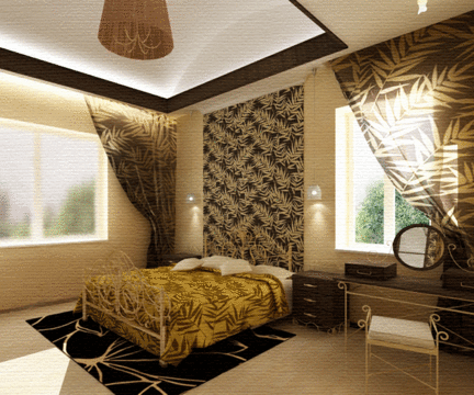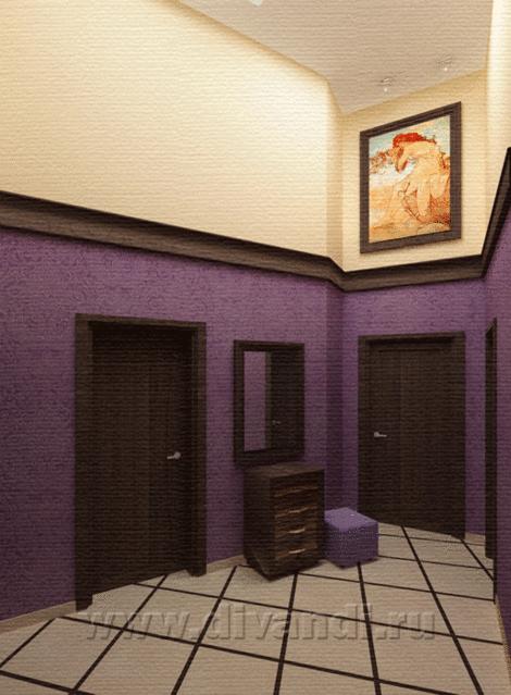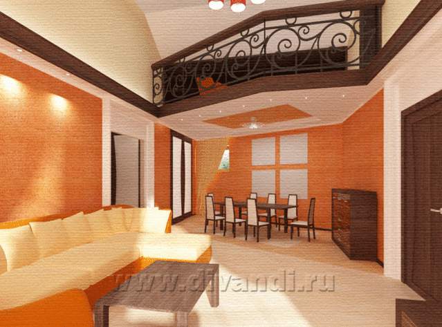 Когда дети выросли и можно уже не работать, хочется… Конечно! Свой дом за городом! Для этого берется старый дачный домик в пригороде, некий типовой проект маленького дома (некий, потому что заказчик, по-моему, сам в итоге был от него в шоке) и пристраивается второе к первому. А дальше… спасибо заказчику за его смелость и яркие идеи. За идею балкона второго этажа с библиотекой и за смелость в цветовом решении. Ведь сделать фиолетовый холл, алую гостиную, кухню цвета лайма и спальню с узором из крупных листьев бамбука решится не каждый :)