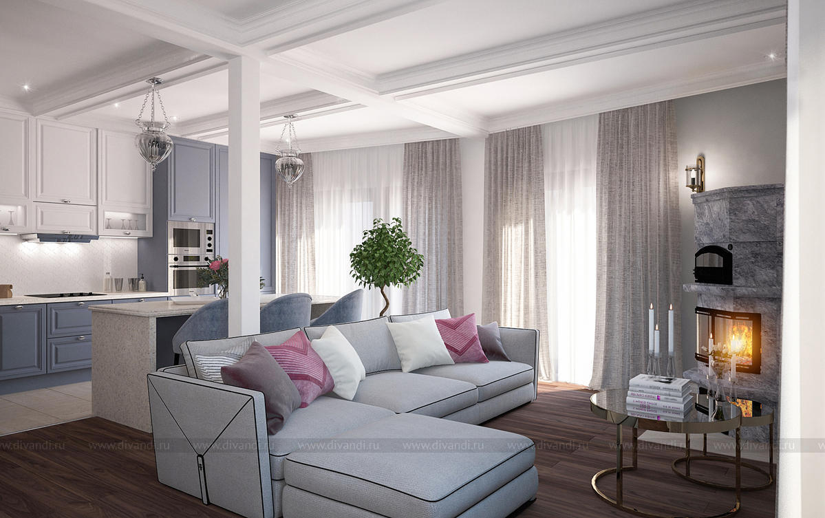Тип проекта: загородный дом, кухня, ванная, гостиная