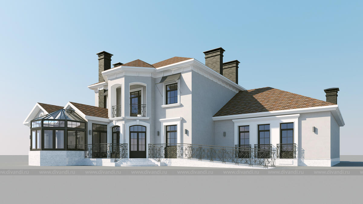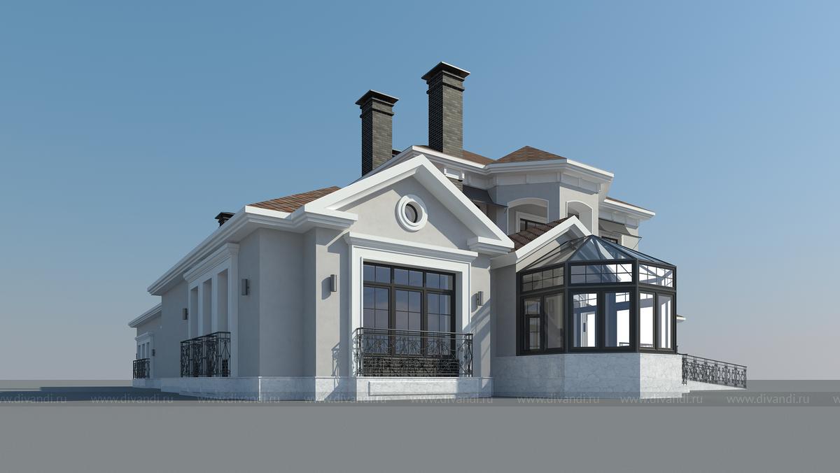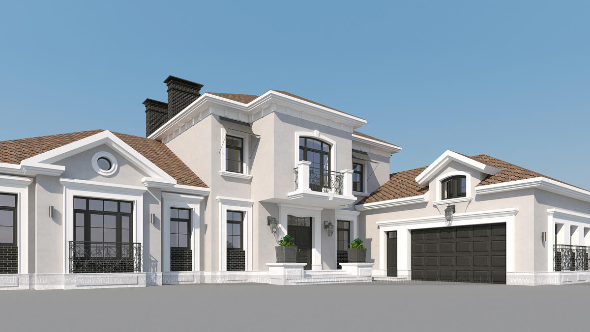 Проект жилого дома. Классический диазйн фасада коттеджа в стиле современная классика.