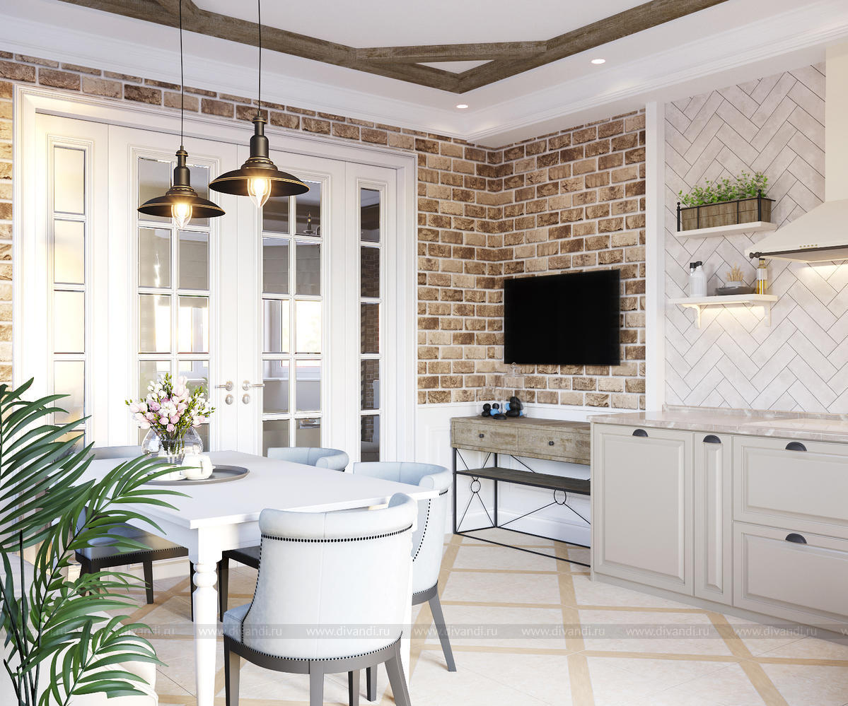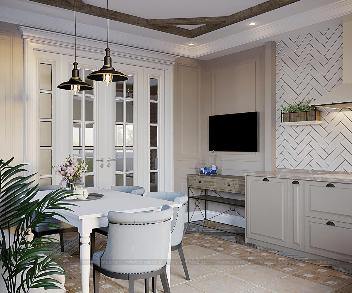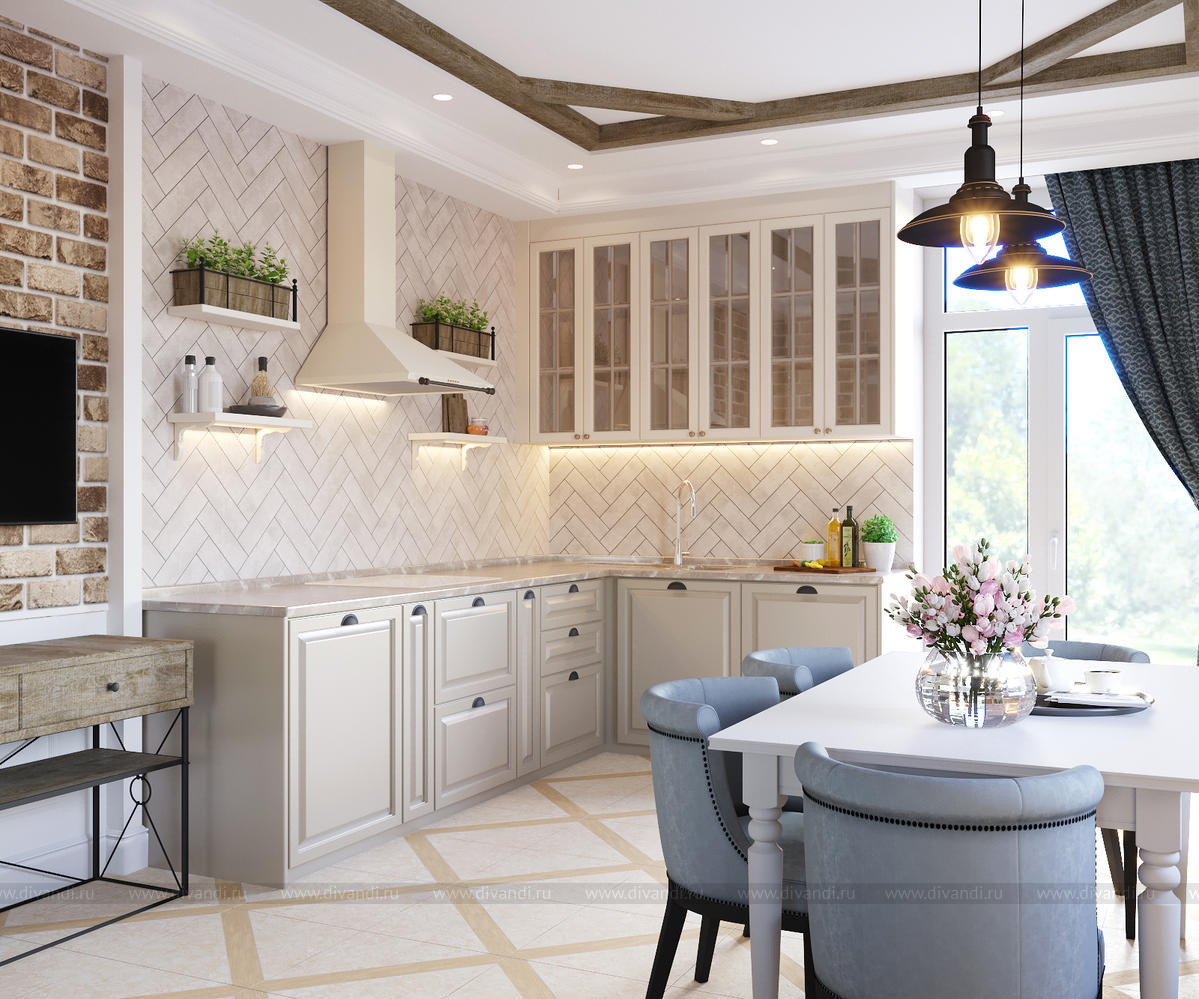 Уютная кухня-гостиная в любимом доме