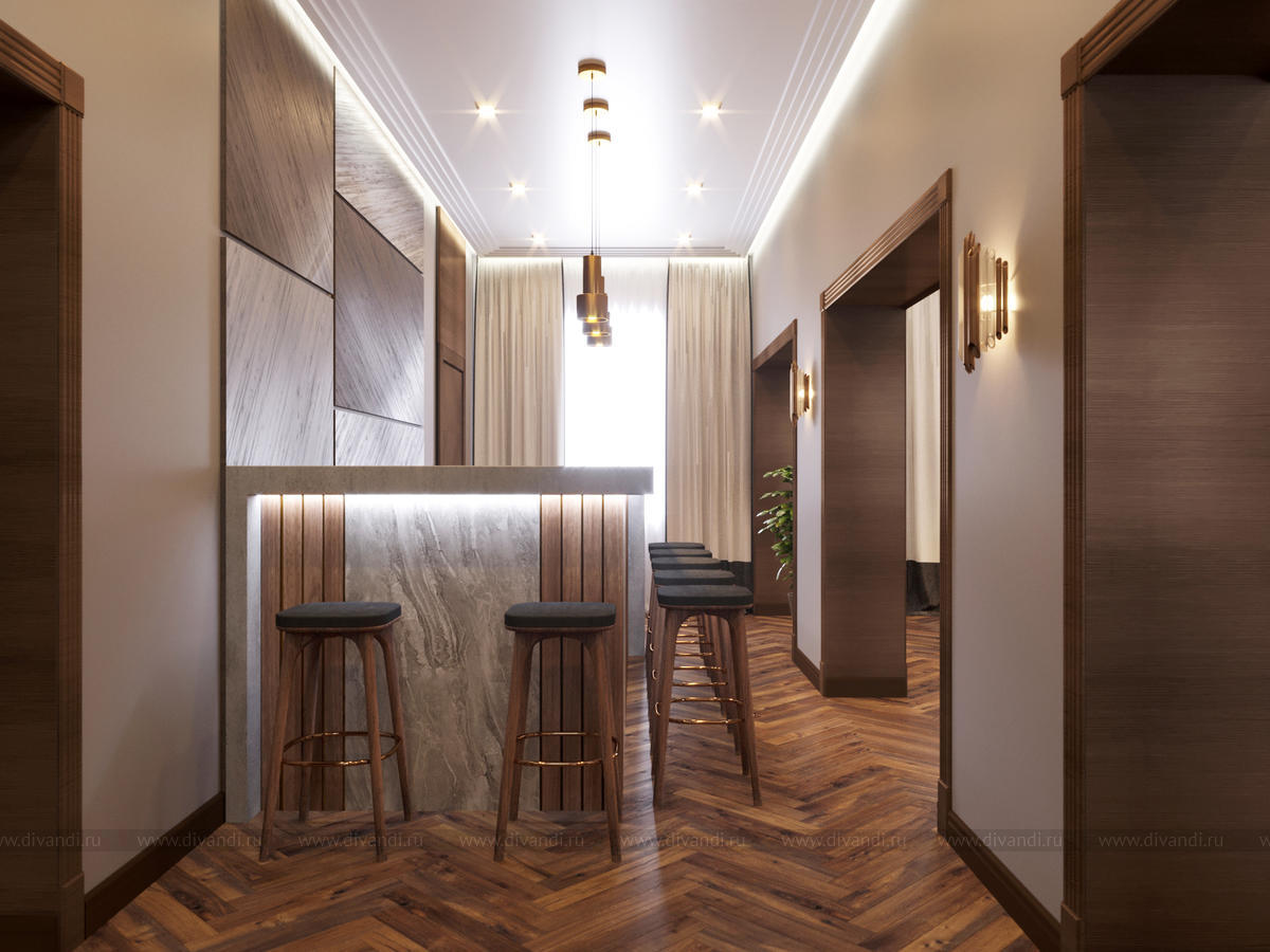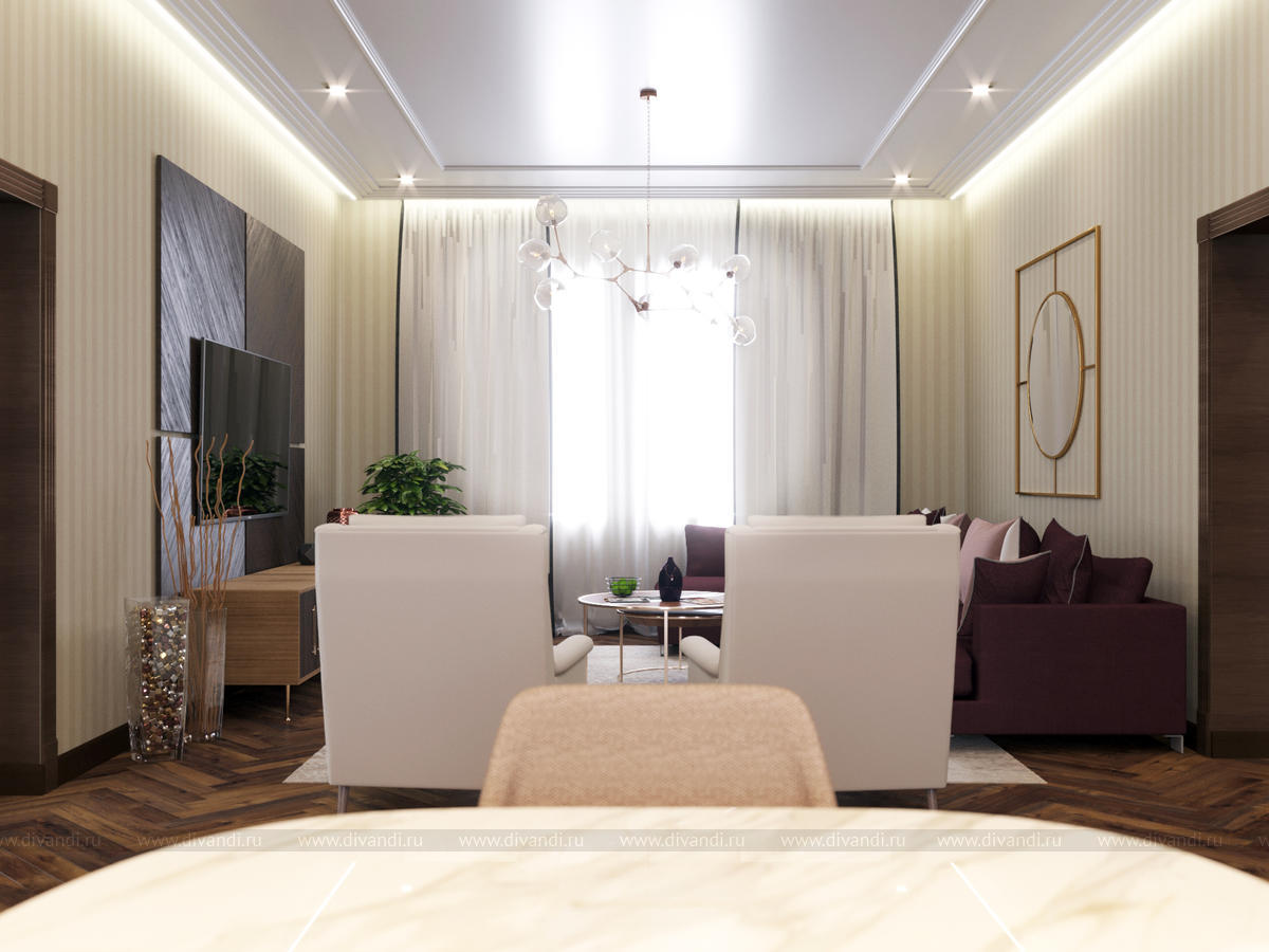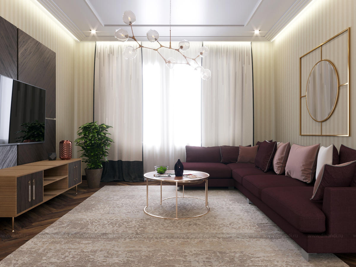 Выбранная заказчиками цветовая гамма была использована в этом проекте. Получился уютный и домашний интерьер!