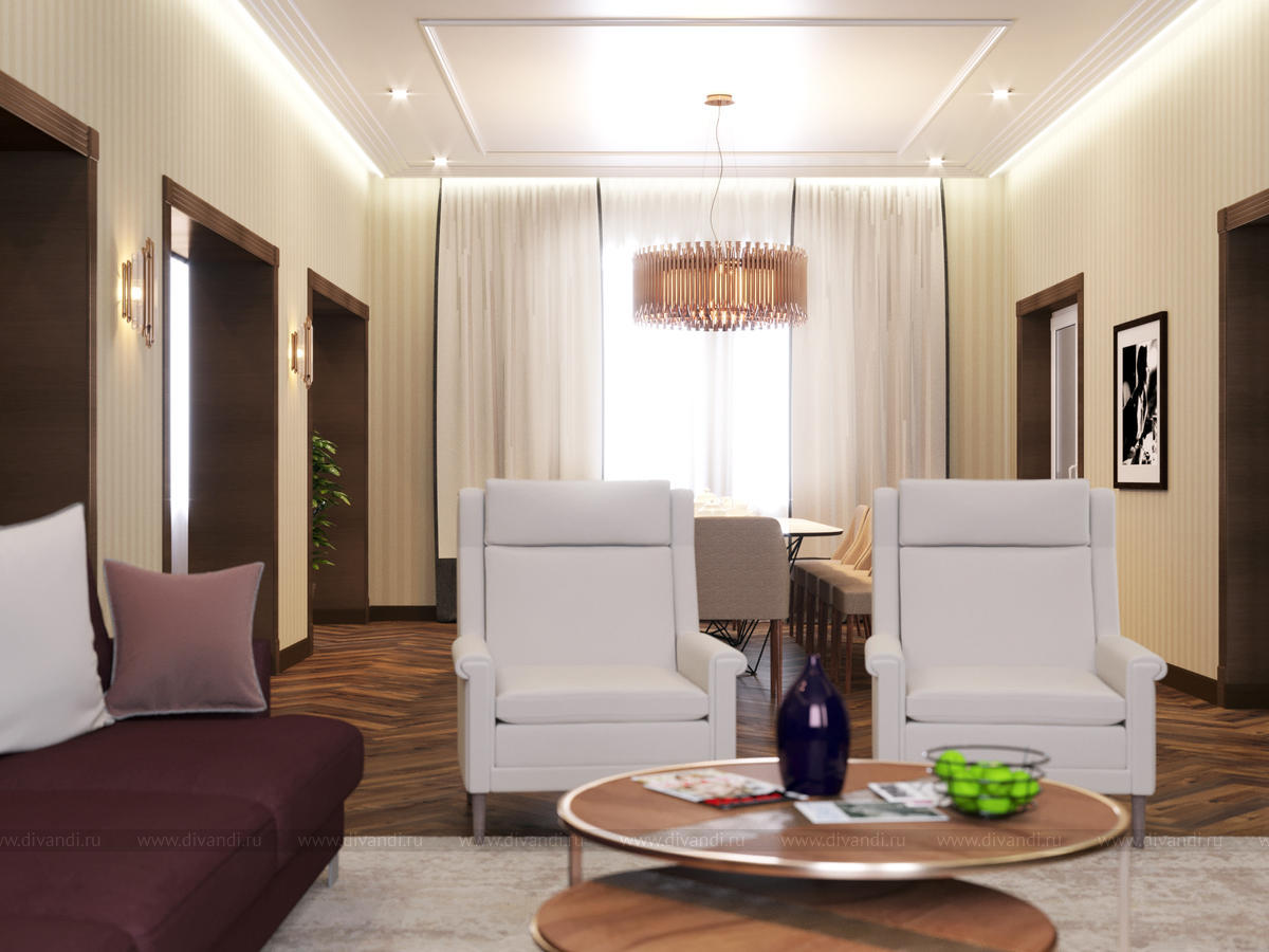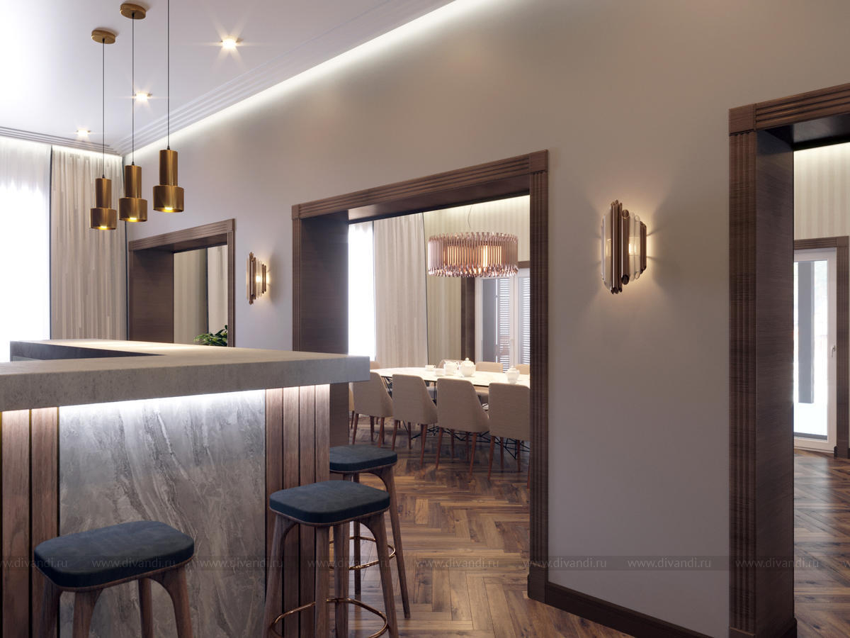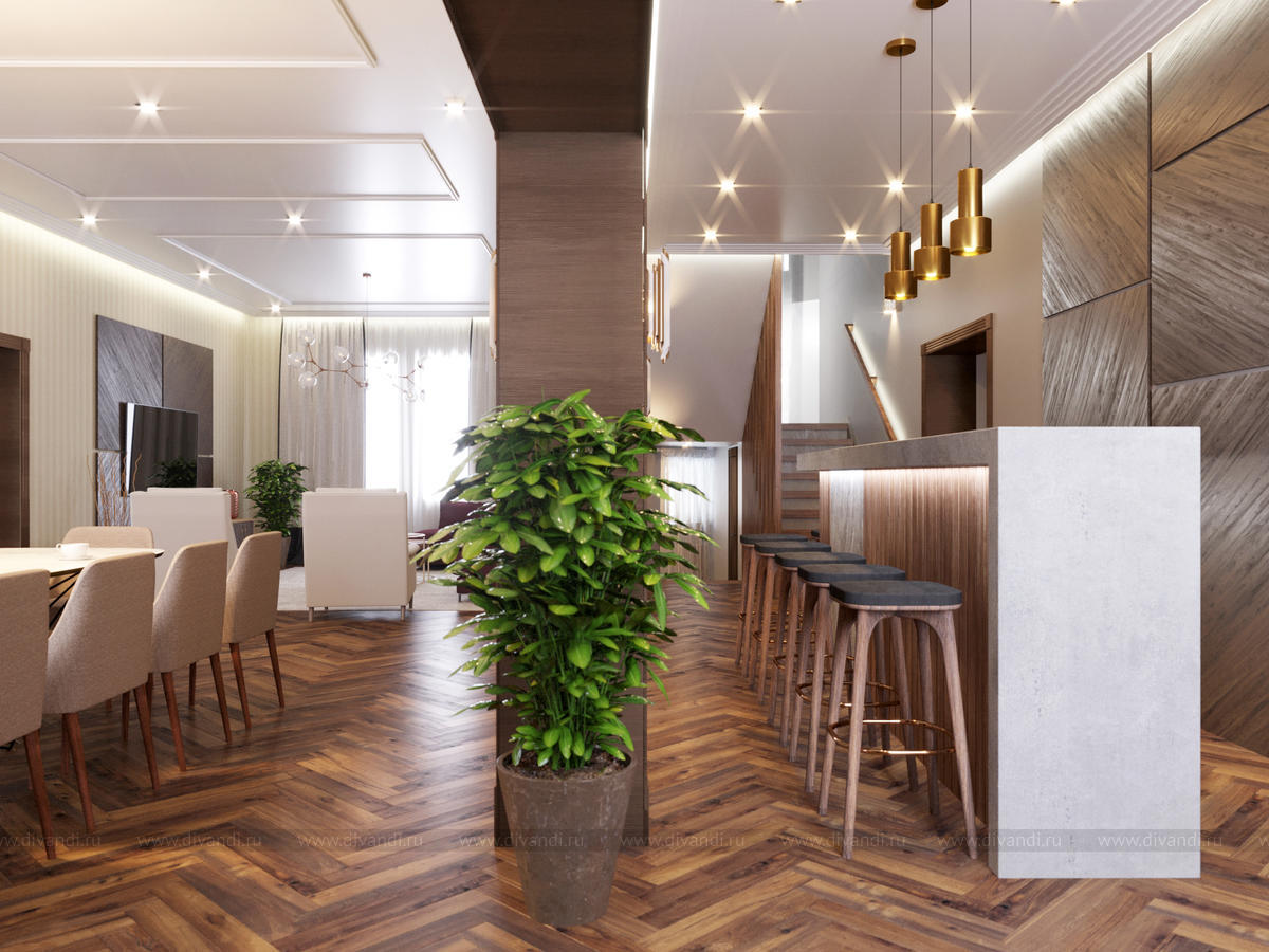 Выбранная заказчиками цветовая гамма была использована в этом проекте. Получился уютный и домашний интерьер!