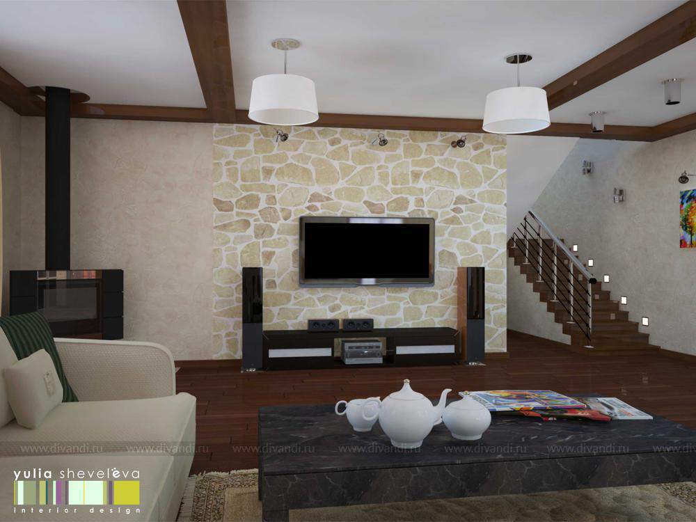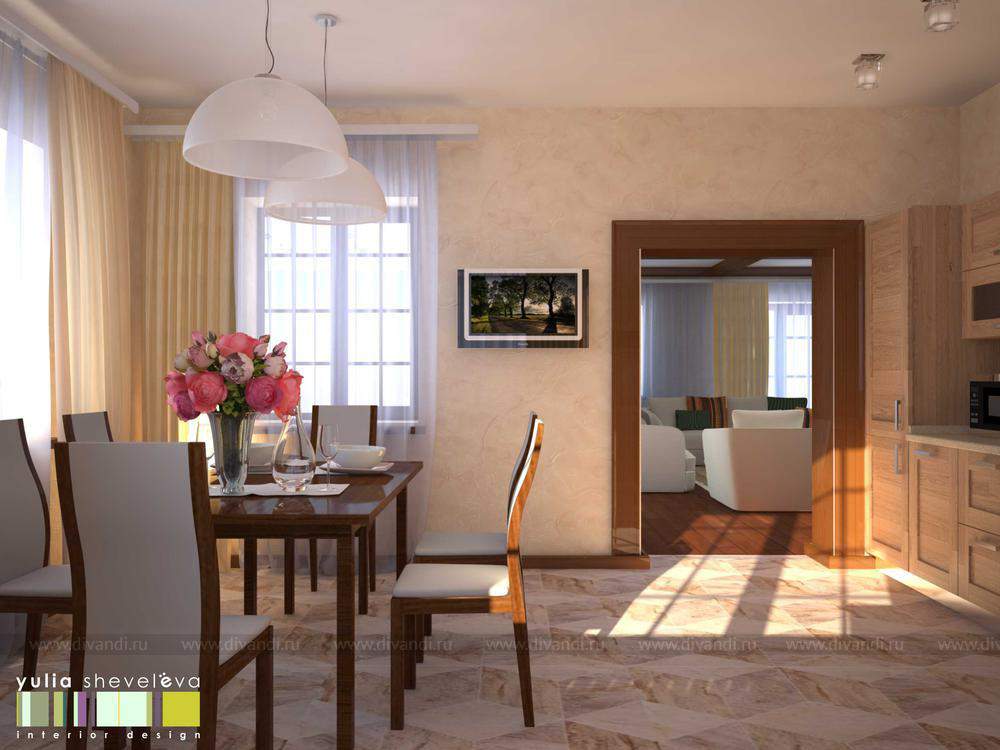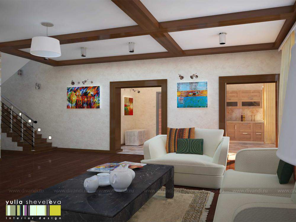 Коттедж в поселке Зуброво. Данный коттедж планируется как шоу-рум, поэтому основная привязка по стилистике была к архитектуре дома.