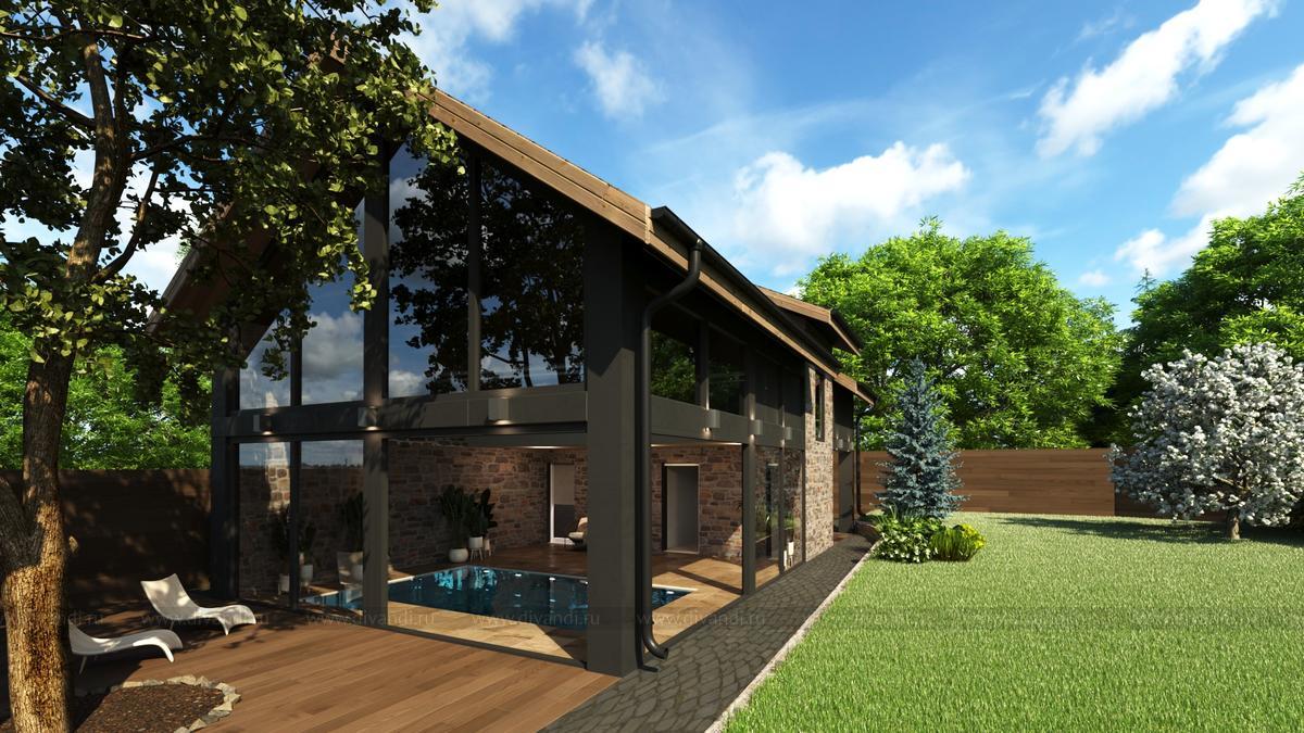 Тип проекта: загородный дом, ванная, гостиная, ландшафтный дизайн