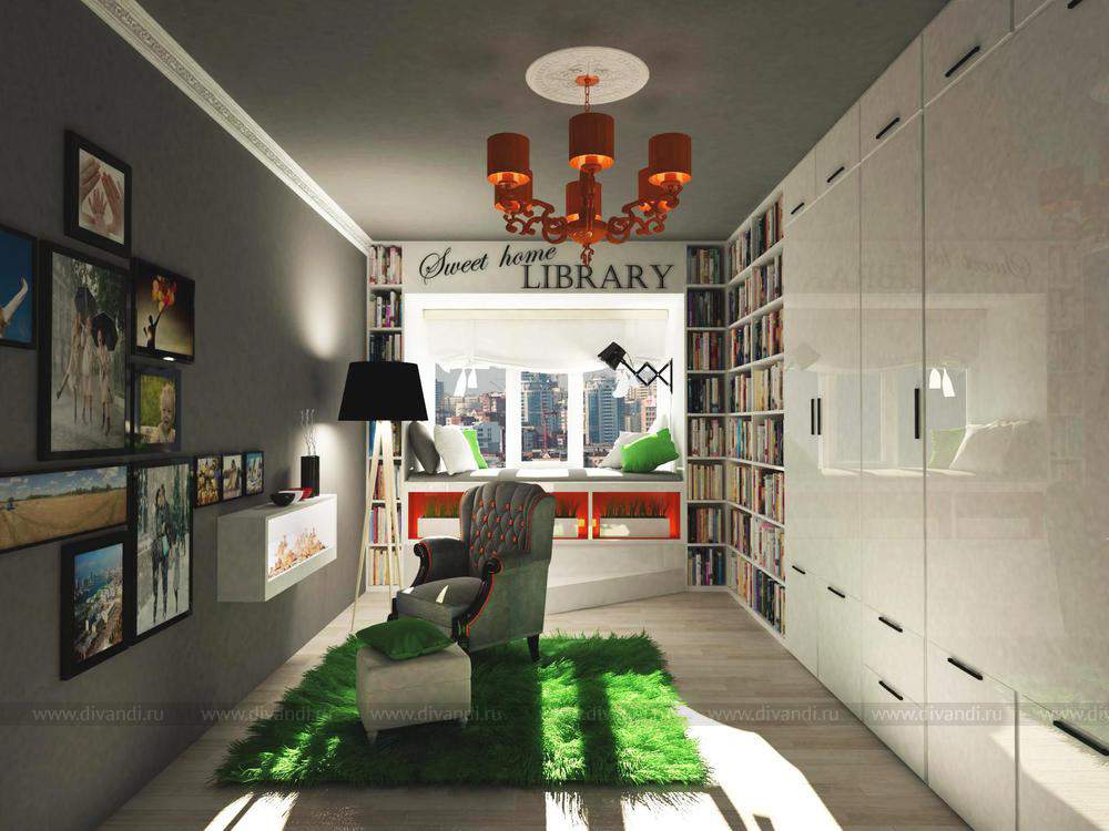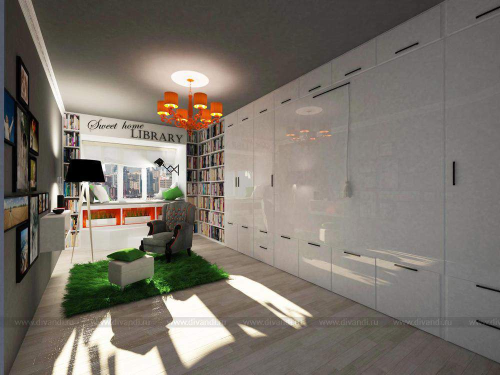 Рано или поздно дети вырастают, переезжают от родителей в свои дома. Тем временем у родителей возникает вопрос: как использовать детскую комнату? Одним из хороших решений сделать библиотеку, уютную и современную. В данном случае задача стояла не только переделать детскую в домашнюю библиотеку, но и дать возможность хозяевам хранить там старые вещи. Даже комната для хранинения может быть стильной, современной, уютной.