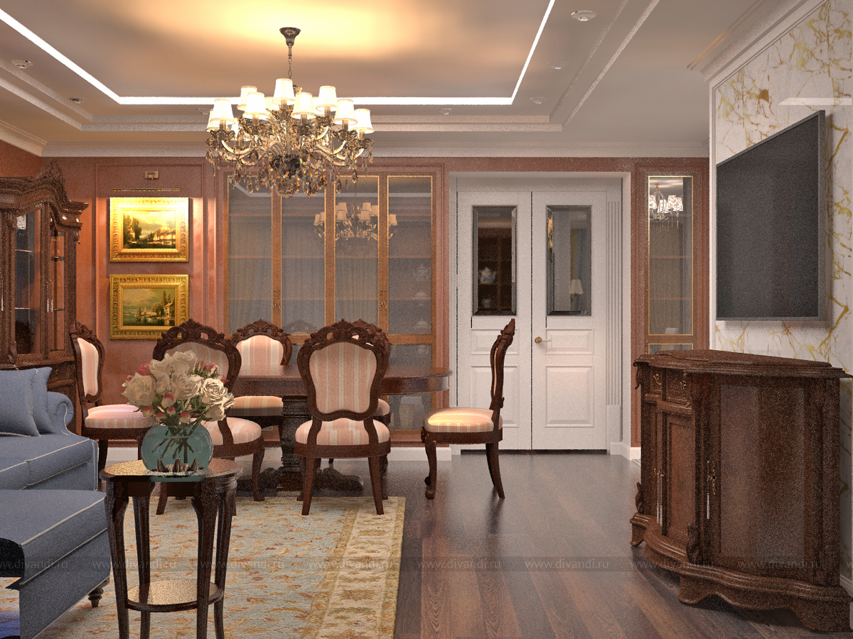 Одно из условий заказчика интегрировать существующую мебель в новый интерьер.