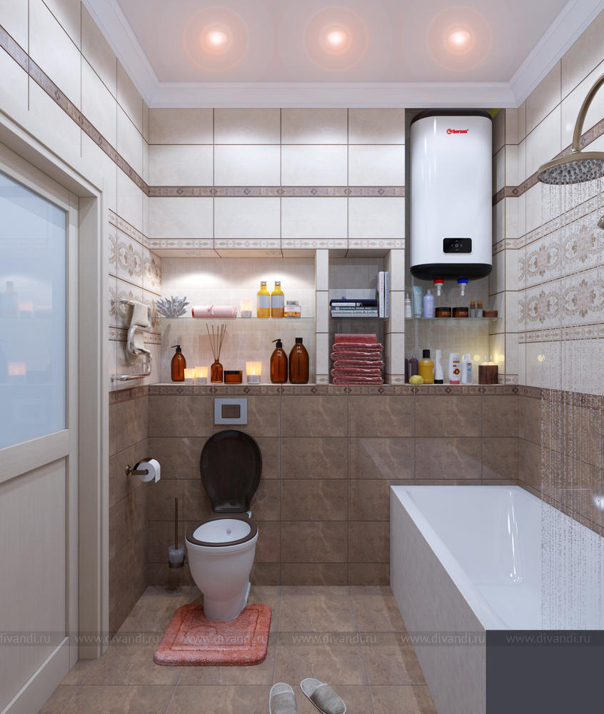 Основное цветовое оформление выражено в нейтральных тонах с добавлением ярких акцентов, что придает интерьеру некую домашнюю утонченность, сдержанность и лаконичность. Грамотное искусственное освещение и обилие различных подсветок функциональных зон накладывает отпечаток мягкости и делает атмосферу теплее.