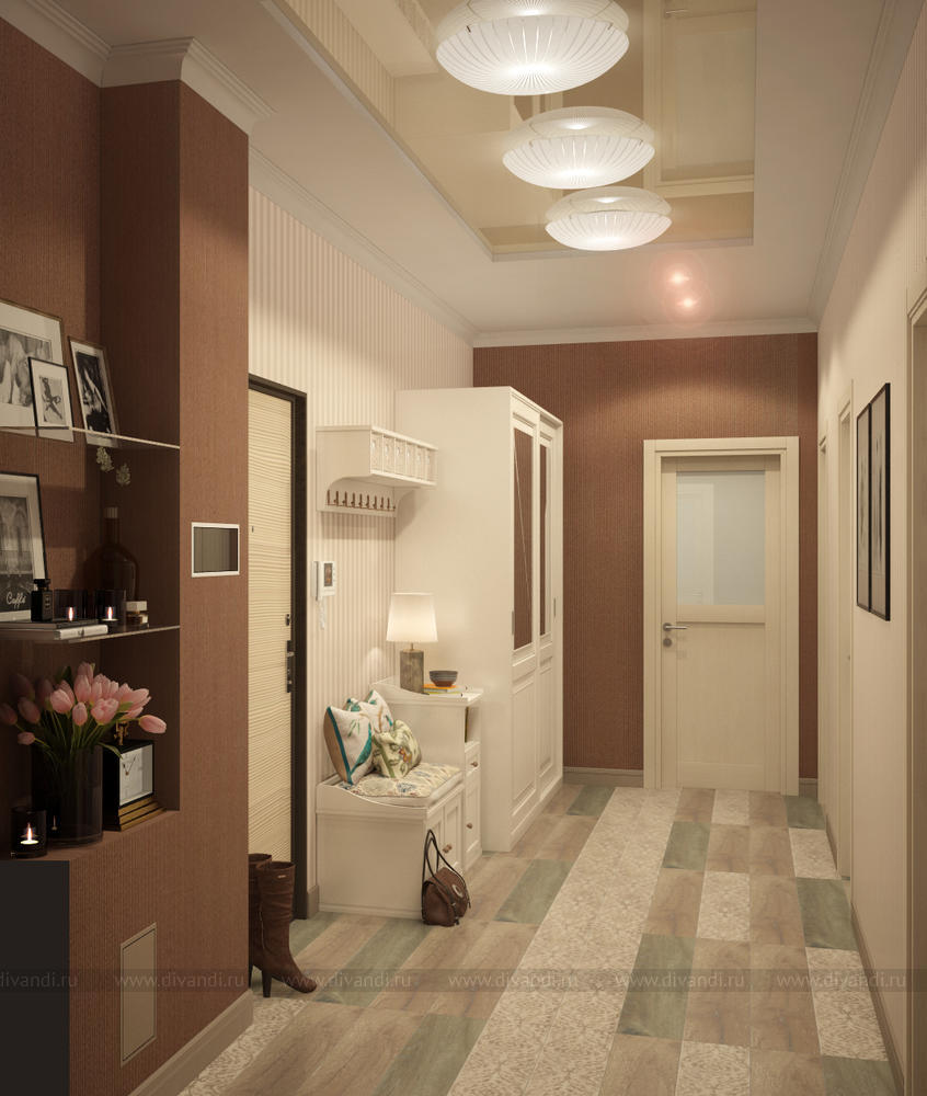 Проект двухкомнатной квартиры площадью 73 кв. м. по адресу г. Пышма, ул. Александра Козицына, 8. Проект выполнен для молодой семьи в современном стиле с элементами классики.