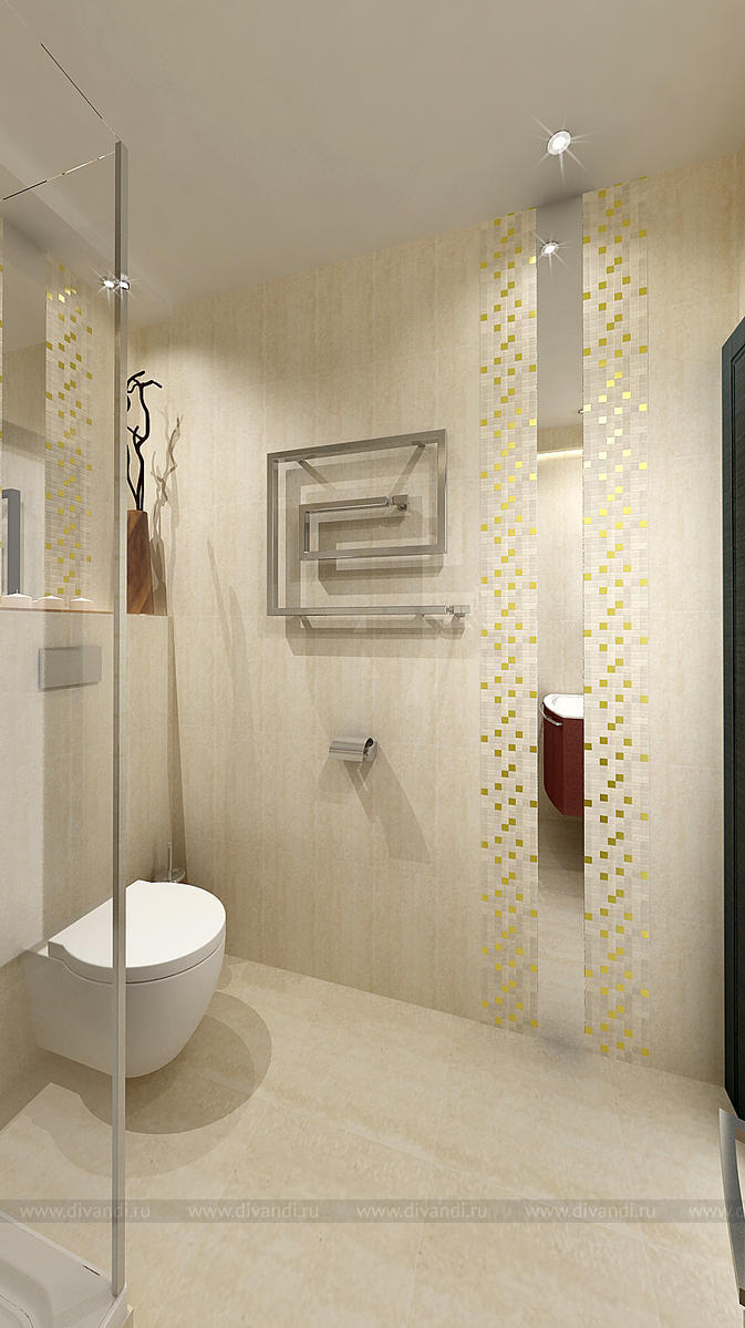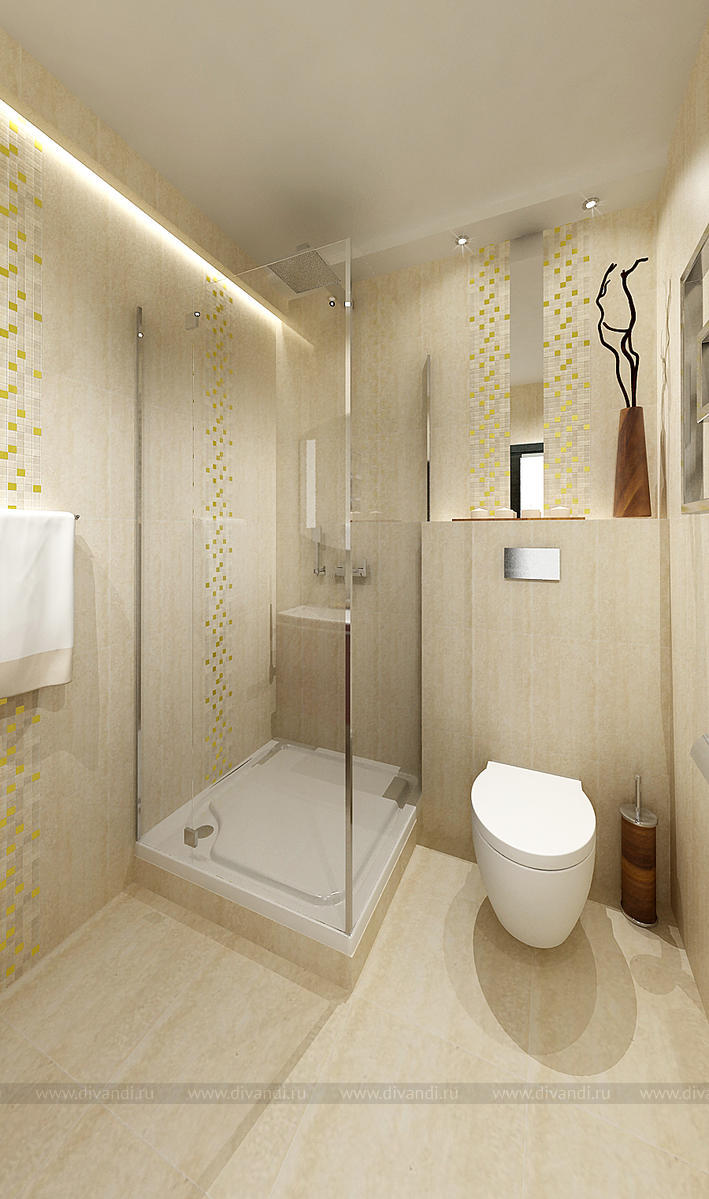 Душевая проектировалась для взрослой пары. Пожелания сводились к спокойному уравновешенному современному интерьеру в бежевых цветах и применения зеркал в качестве отделки стен.