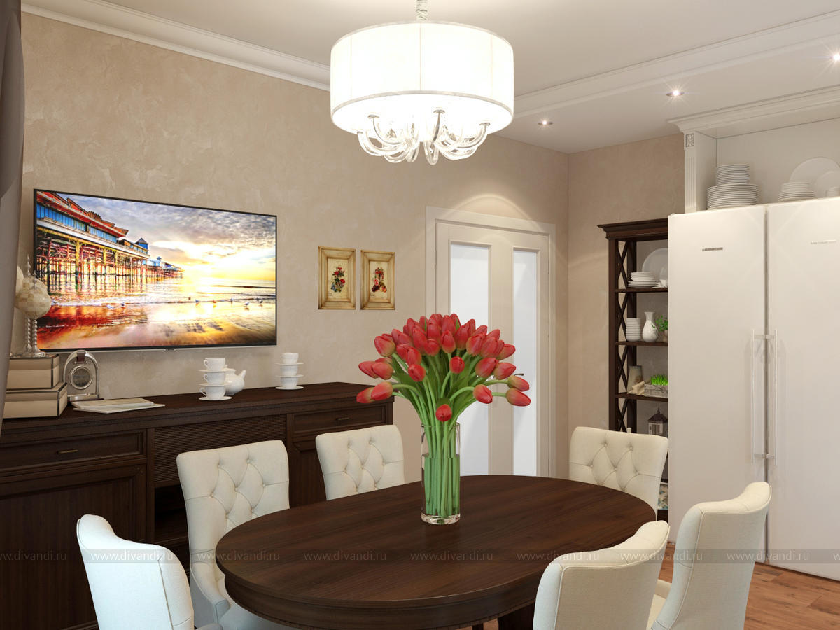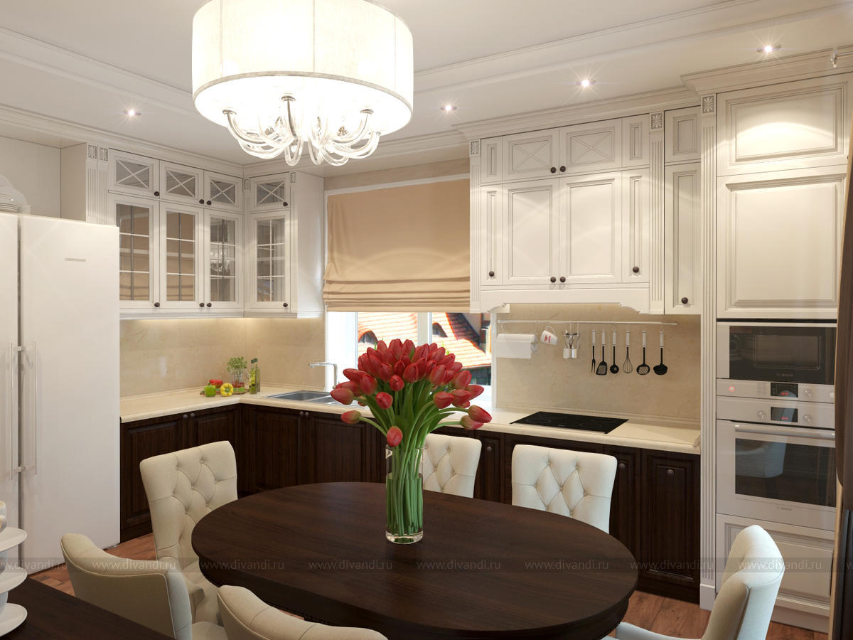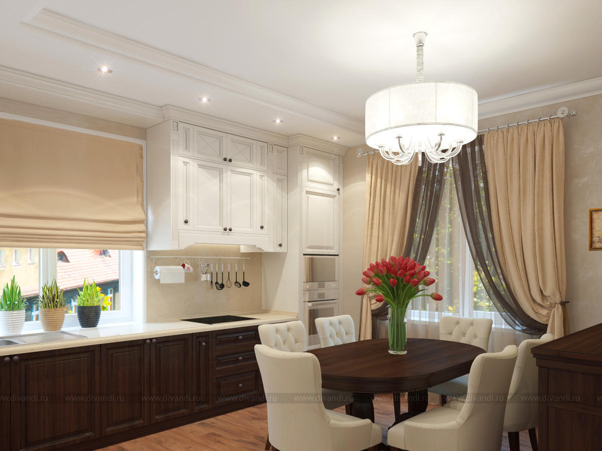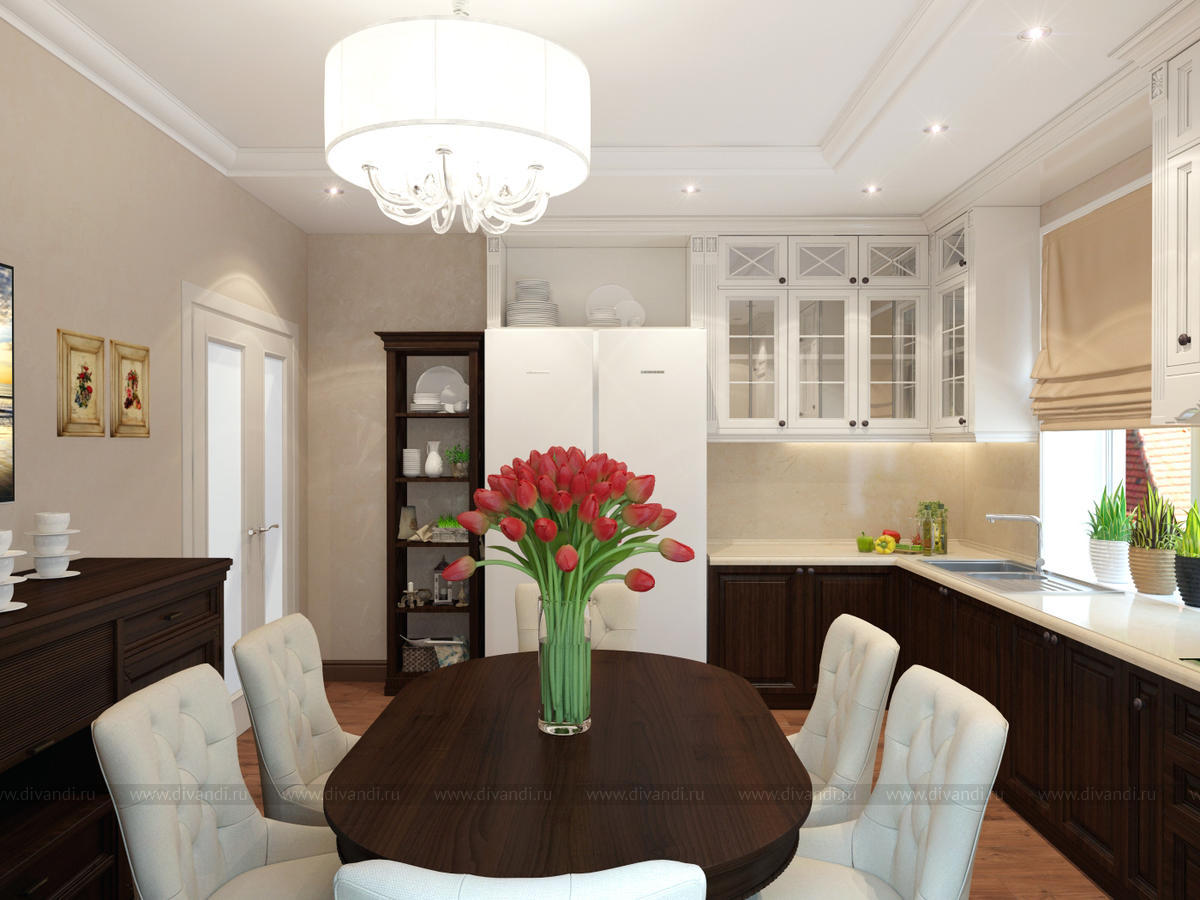 Сочетание белого и темного дерева в кухонном гарнитуре