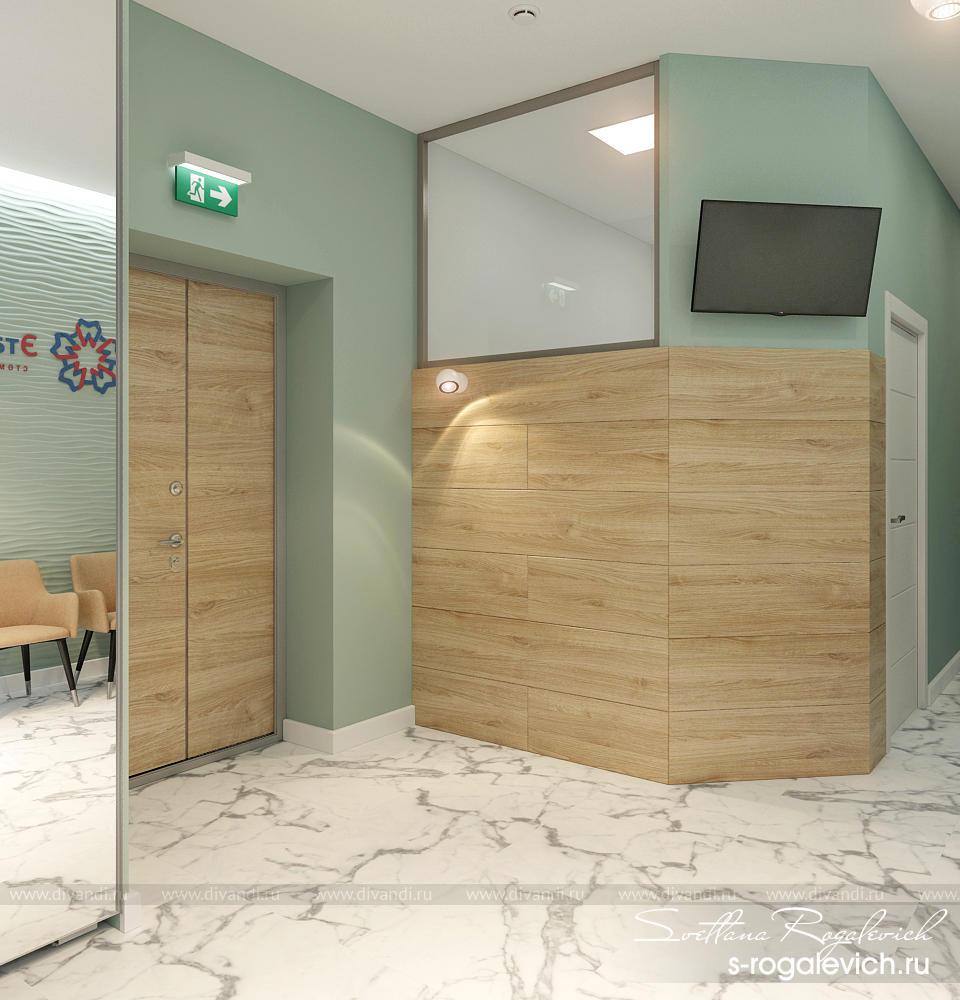 Интерьер холла разработан в современном стиле. Использованы лаконичные формы, практичные интересные материалы, спокойные цвета.