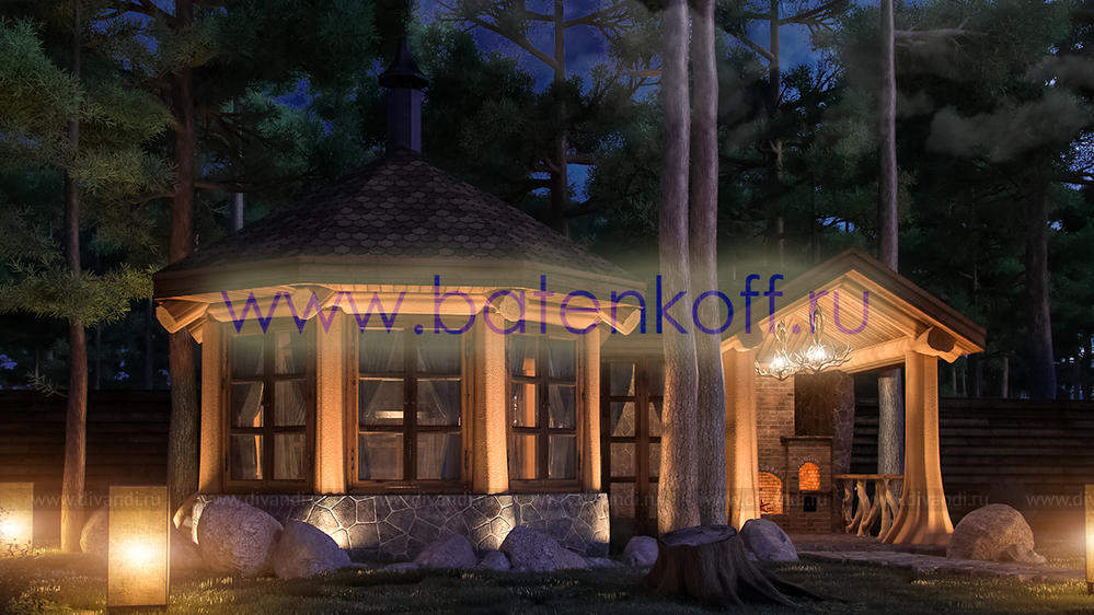 Красивый фасад беседки в стиле кантри