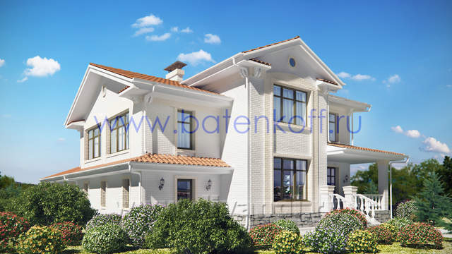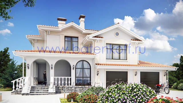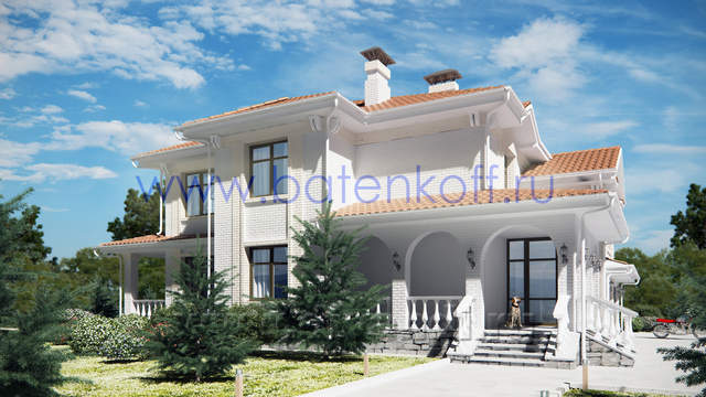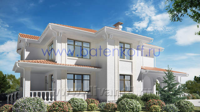 Светлый, большой дом, построенный из белого и желтого кирпича непривычен для восприятия россиянина. Привычно когда кирпичный дом имеет терракотовый цвет. Но в данном случае он светлый. Этот дом должен стоять на побережье, а вид из окна на океан где то в Майами. Наша цель – создать Майами на Урале. Будем делать большой водоем, песок и наверное посадим пальмы, но чуть позже … Очень красиво с кирпичем белого цвета смотрится терракотовая натуральная черепица и грубоватый серый камень которым отделан цоколь. Арки обрамляющие фасад, балясины – все это придает классический дизайн фасада кирпичного дома. Кирпичный дом далеко не обязательно должен быть рыже-коричневым. Сейчас выпускают огромный спектр цветов кирпичей. Экспериментируйте и наш город зацветет.