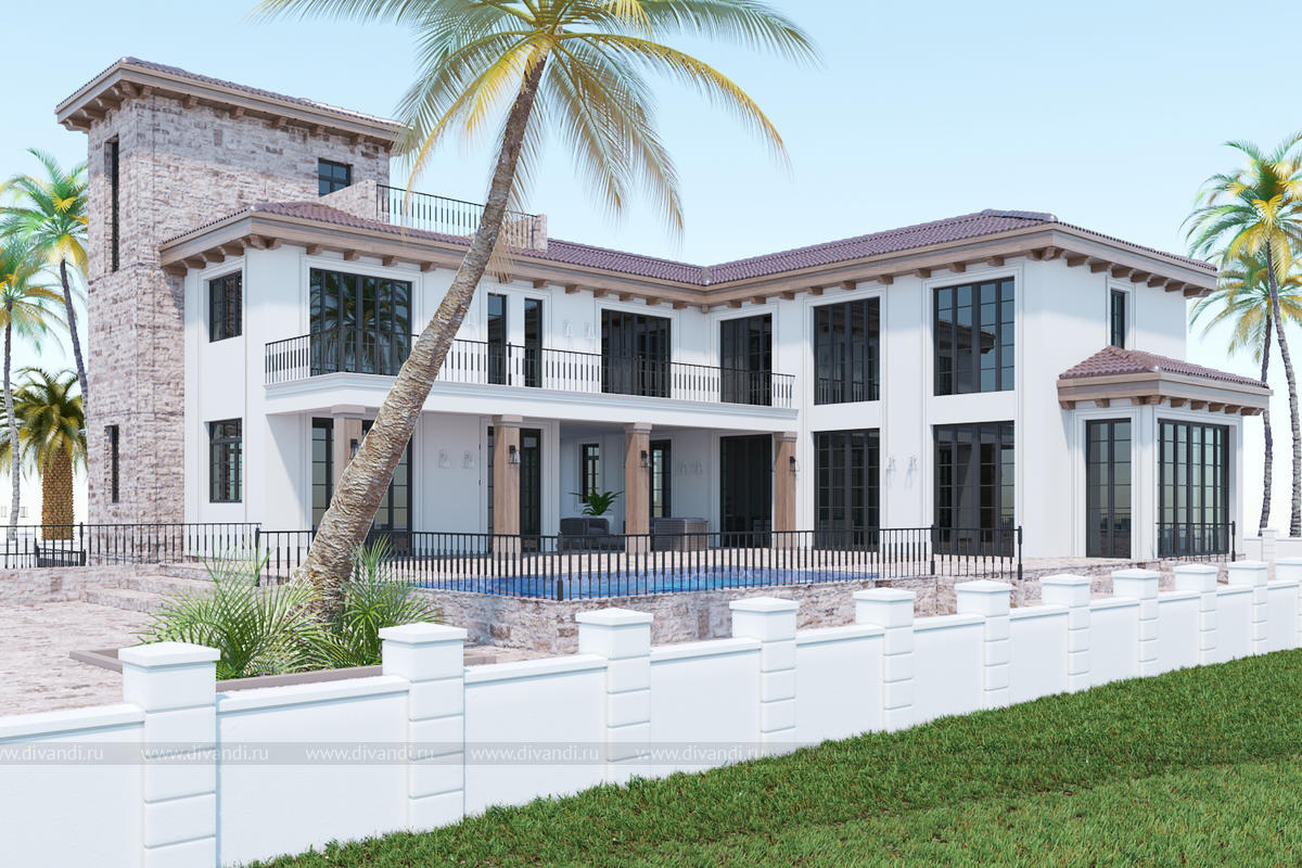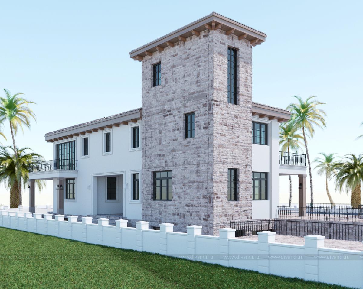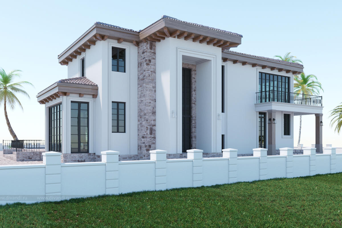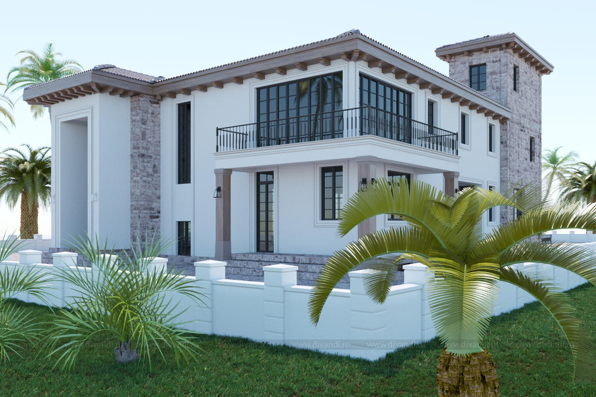В изначальном варианте решения фасадов было слишком много камня. Из-за этого дом смотрелся очень тяжело несмотря на то, что классические испанские фасады разбавляли современные элементы - стеклянные балконы, зимний сад и т.д.