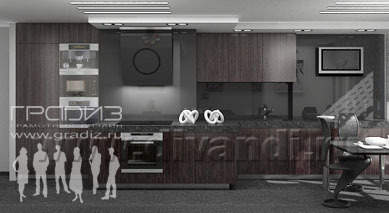 Реализовав древние восточные традиции, дизайнеры выдержали интерьер прихожей, гостиной и кухни в урбанистическом стиле. Особенной изюминкой этой зоны квартиры является кожаный паркет.