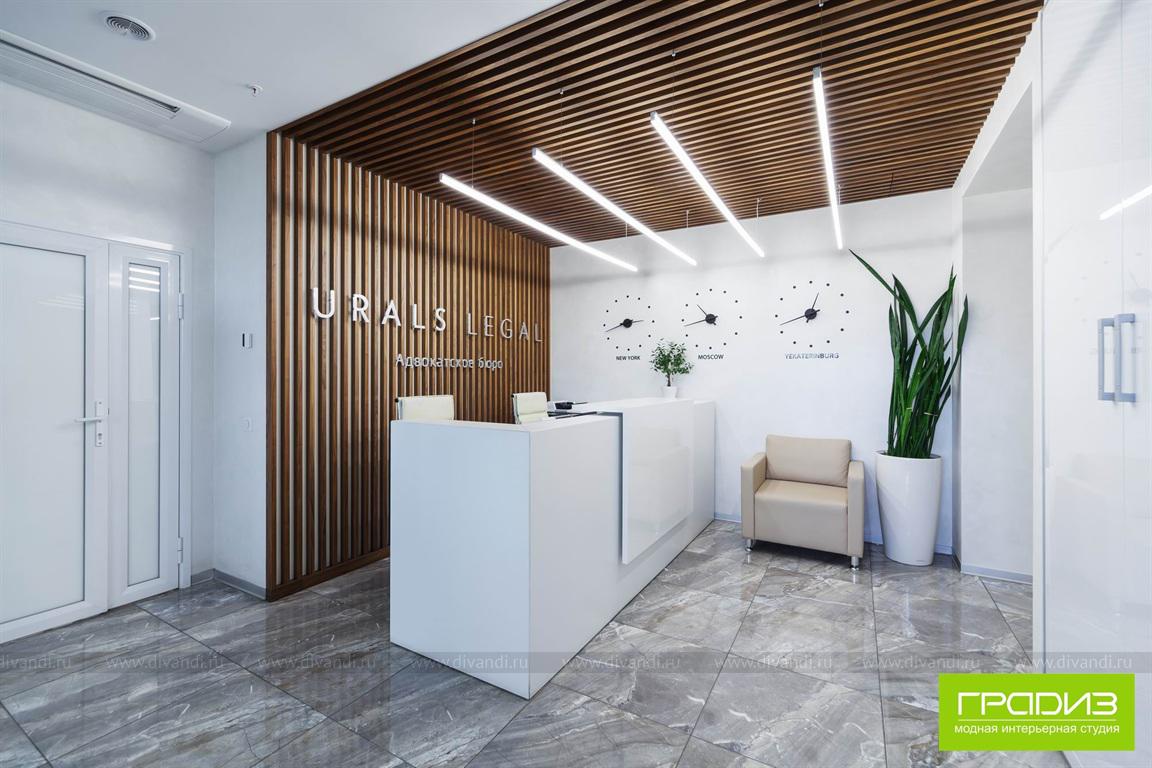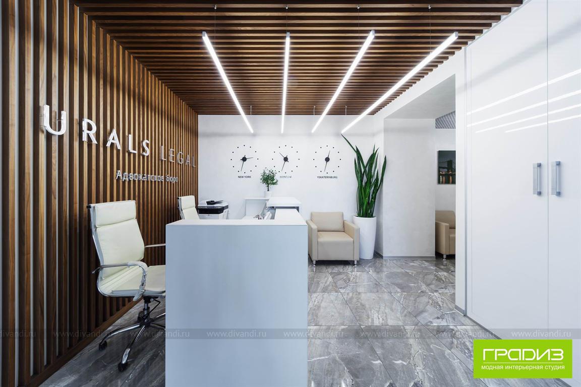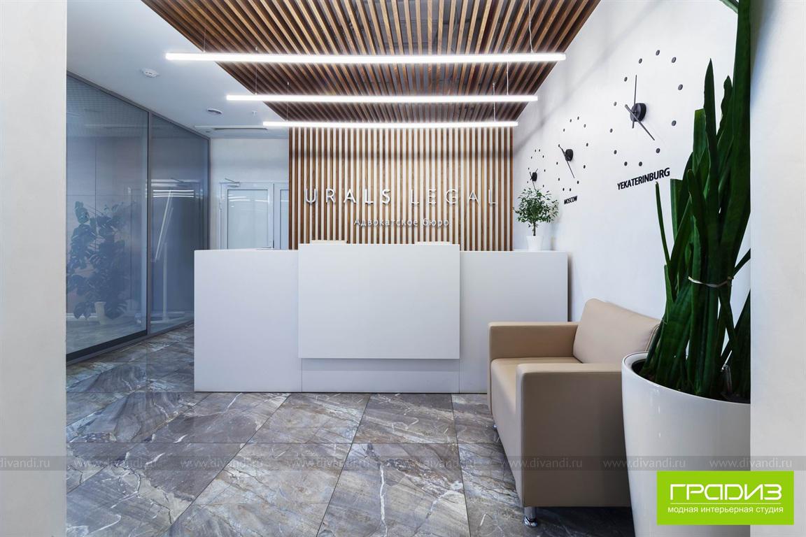 Стильный деловой интерьер для адвокатского бюро площадью 159 кв.м. В интерьере тонко сочетаются природные мотивы и строгость. Эко-мотивы возникают за счет использования камня, дерева и живых растений, строгость придают жесткие, прямые, четкие формы.