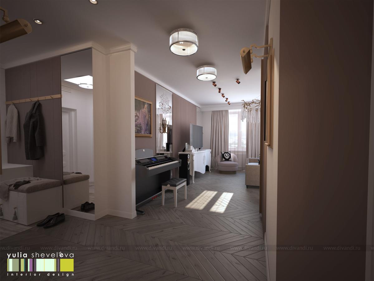 Работа над проектом началась с проработки варианта по перепланировки квартиры. В результате, самый необычный планировочный вариант стал самым идеальным. Отправной точной формирование интерьера стали любимые картины хозяев, которые нужно было красиво вписать в интерьер.